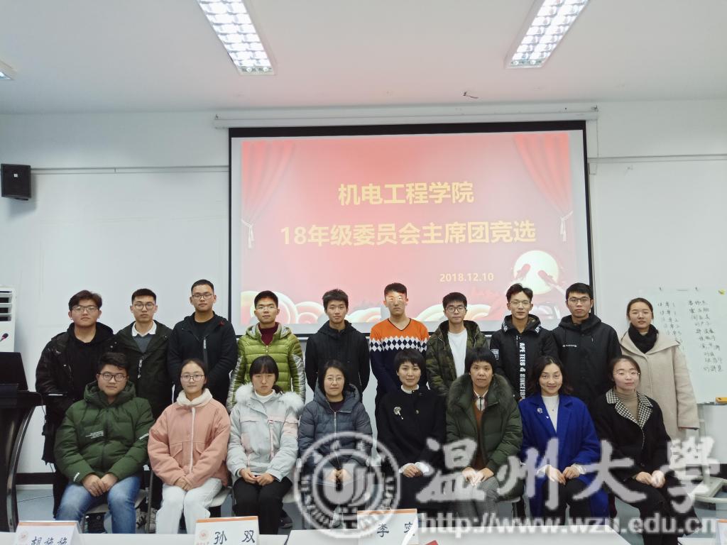 最终通过5位评委老师,25名各班级学生代表投票选举出由18卓3班长郑俊豪为主席、18机械类1班团支书刘琪18机械类2班团支书刘群慧为副主席的年级委员会主席团。