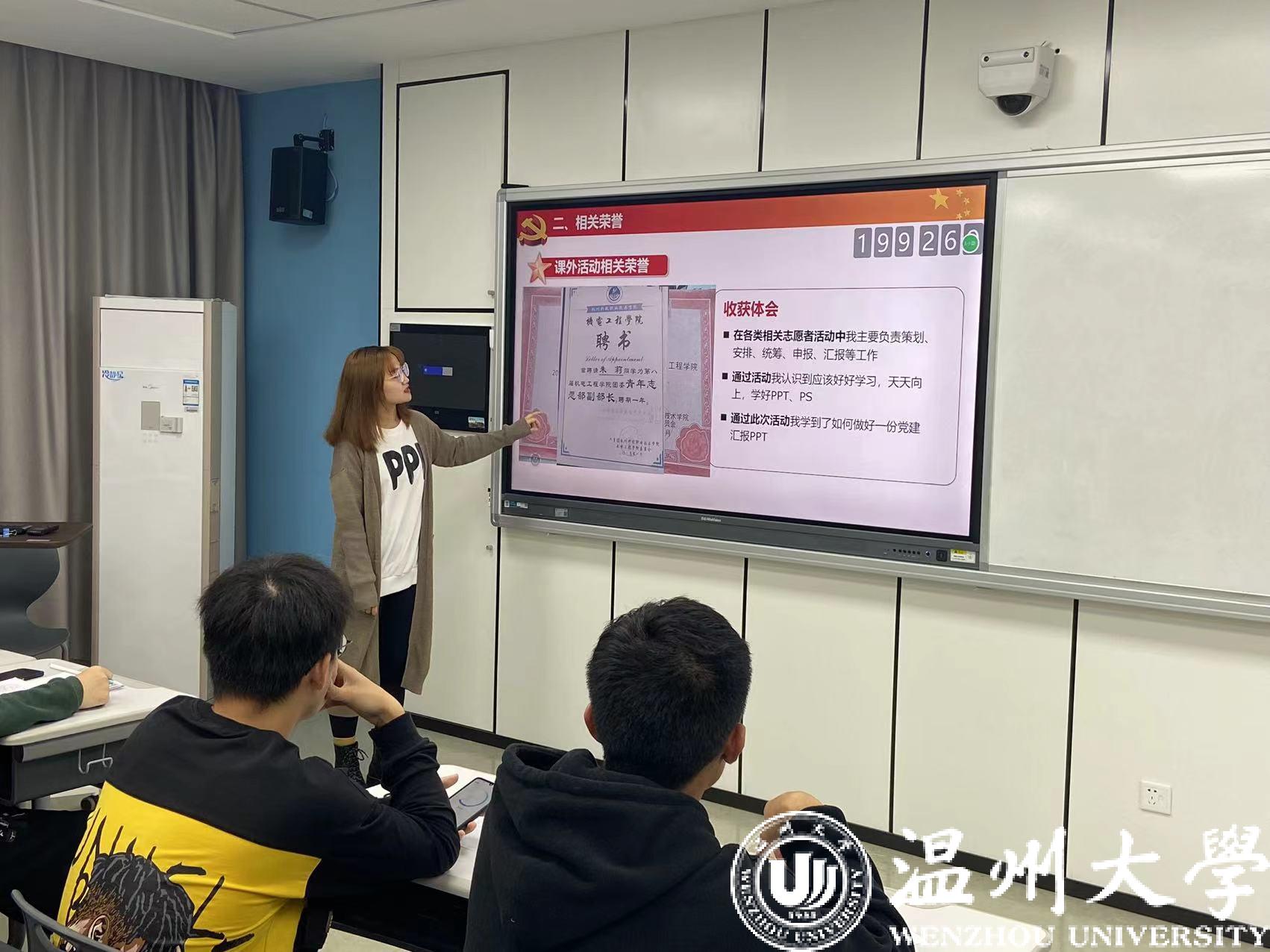 2021年11月1日,中共双赢彩票 学生第三党支部入党积极分子发展答辩大会于6-B308顺利召开。出席本次大会的成员有支部书记徐欢老师、支部全体党员同志以及陈曹宇、朱莉等17名入党积极分子,本次大会由戚成凯同志主持,主题为入党积极分子发展答辩。