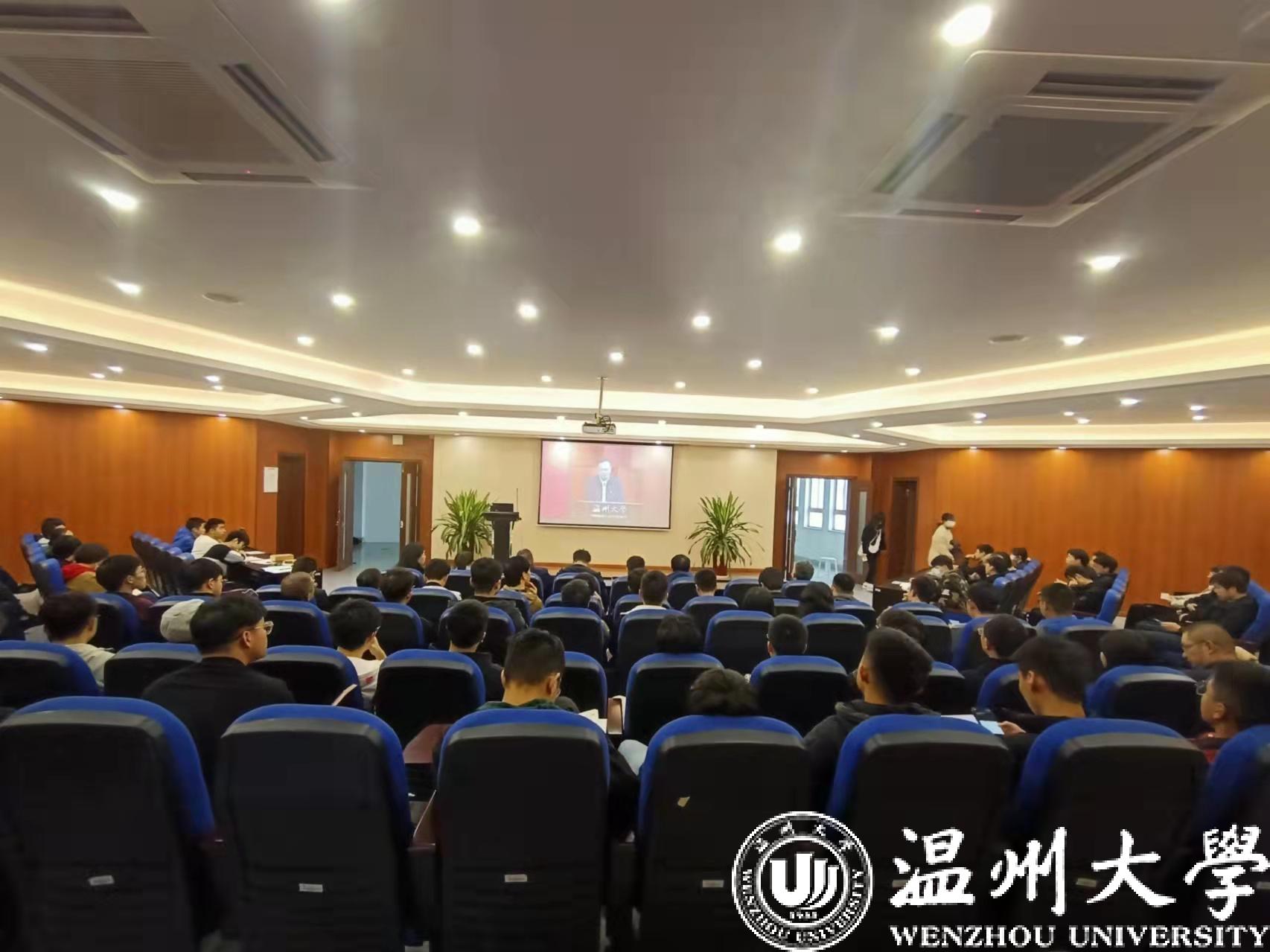 11月17日,中共双赢彩票 学生第三党支部党员以及积极分子于6-B309共同观看了“永远跟党走”温州市党史学习教育主题报告会双赢彩票 专场暨党的十九届六中全会精神宣讲会直播,会议严格按照疫情防控要求,采取隔位就坐的形式。