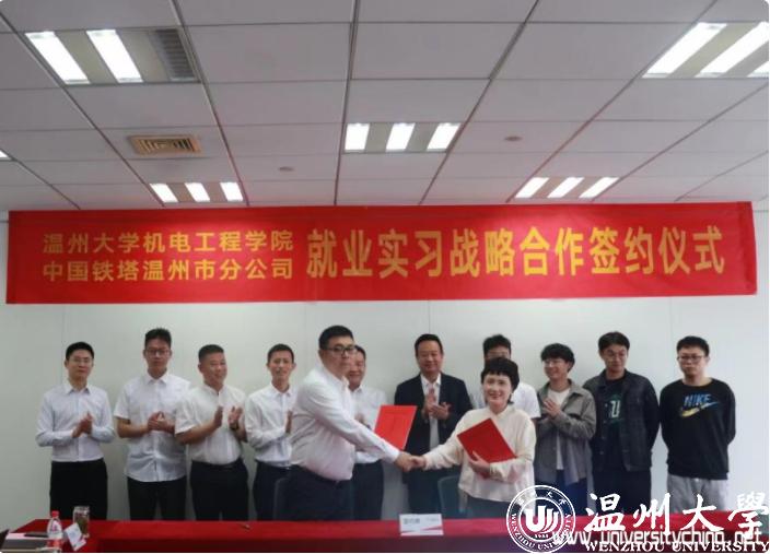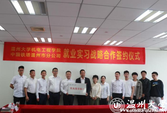 黄玮副书记、于京胜副总经理代表校企双方签订就业实习合作协议,向家伟院长向中国铁塔温州分公司授牌,正式在该公司建设“双赢彩票 就业实习基地”