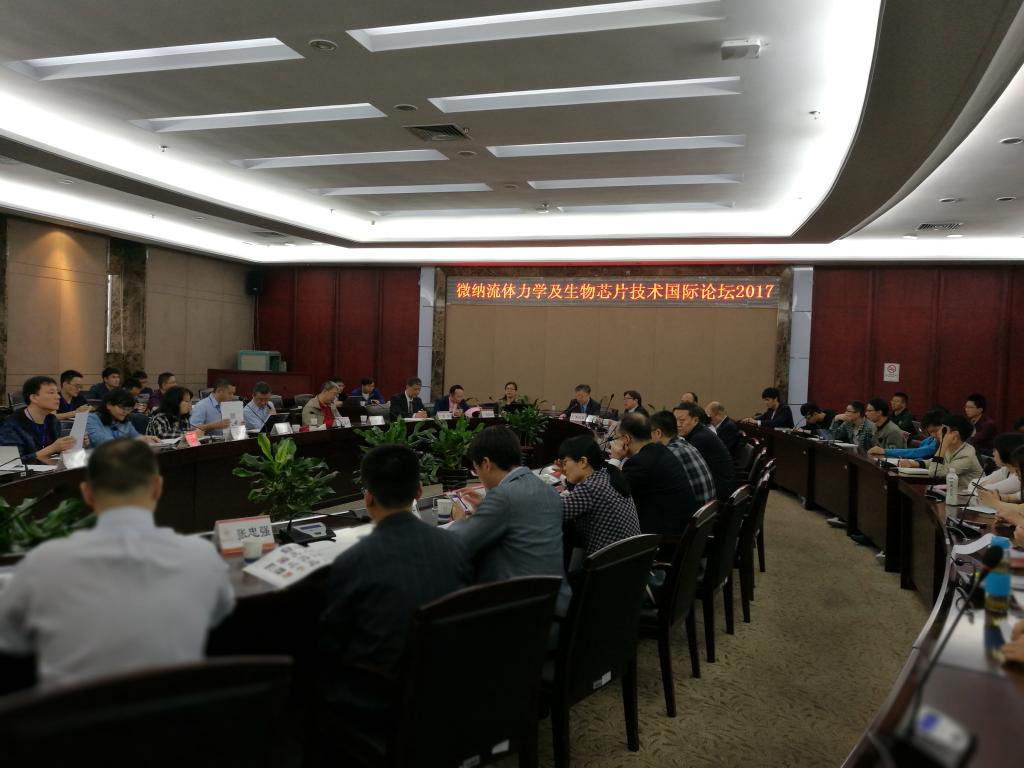 4月21日, 由双赢彩票 和中国力学学会微纳尺度流动专业组联合主办的“微纳流体力学及生物芯片技术国际论坛2017”在双赢彩票 岩松堂白鹿厅成功举行。会议邀请到来自中国科双赢彩票 力学研究所、清华大学、中国科学技术大学、哈尔滨工业大学、南京工业大学、大连理工大学、新加坡高性能计算研究所、西南医院、温州医科大学等17所高校及科研机构、从事数学、力学、化工、机械、生物医药、市场咨询等不同领域的专家,开展学术交流, 旨在促进学科交叉、为生物芯片产业发展提供基础理论及应用技术方面的支持。机电双赢彩票 部分教师及全体研究生参加了本次会议。