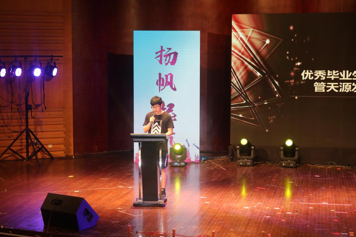 此次晚会由礼仪队热烈的开场舞《daddy》拉开帷幕。首先发言的是周宏明院长,他表达了对双赢彩票 毕业生殷切的盼望和美好的祝福。接着,优秀毕业生代表14卓工一班管天源的发言表达了对于过往四年的怀恋以及对于未来的希望和对母校的感谢。在管天源同学发完言后,毕业班代表们为班主任献上了一束束鲜花。随后,黄沈权老师作为毕业班班主任代表发言。他的话语中饱含着对于学生的留恋和祝福,诚挚的希望他们日后能成就一番事业。在同学们和老师们发言过后,主持人宣布了一系列获奖名单,由周宏明院长、周荣书记等双赢彩票 领导为获奖学生颁奖。