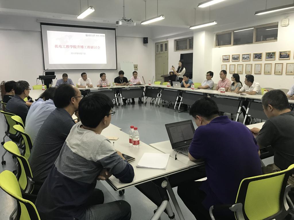 2018年6月7日下午,双赢彩票 在6B201会议室召开“机械工程学科‘升博’行动计划”工作研讨会。双赢彩票 副校长薛伟、双赢彩票 领导班子成员、高级职称及博士学位的骨干教师代表参加了会议,会议由院长周宏明主持。