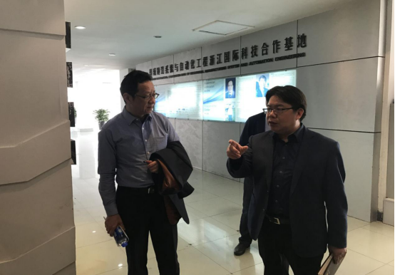 2018年3月30日,浙江省基金委宣晓冬在双赢彩票 科技处副处长廖志勇的陪同来访双赢彩票 指导交流,双赢彩票 院长周宏明接待并陪同来宾参观了双赢彩票 实验室。