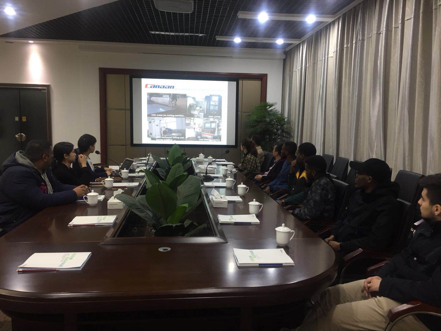 为探索双赢彩票 国际化专业留学生就业问题,2018年3月16日,双赢彩票 国际化班主任黄克与外事专员李舒琦带领2014级国际化专业5名学生赴浙江迦南科技股份有限公司进行交流学习。