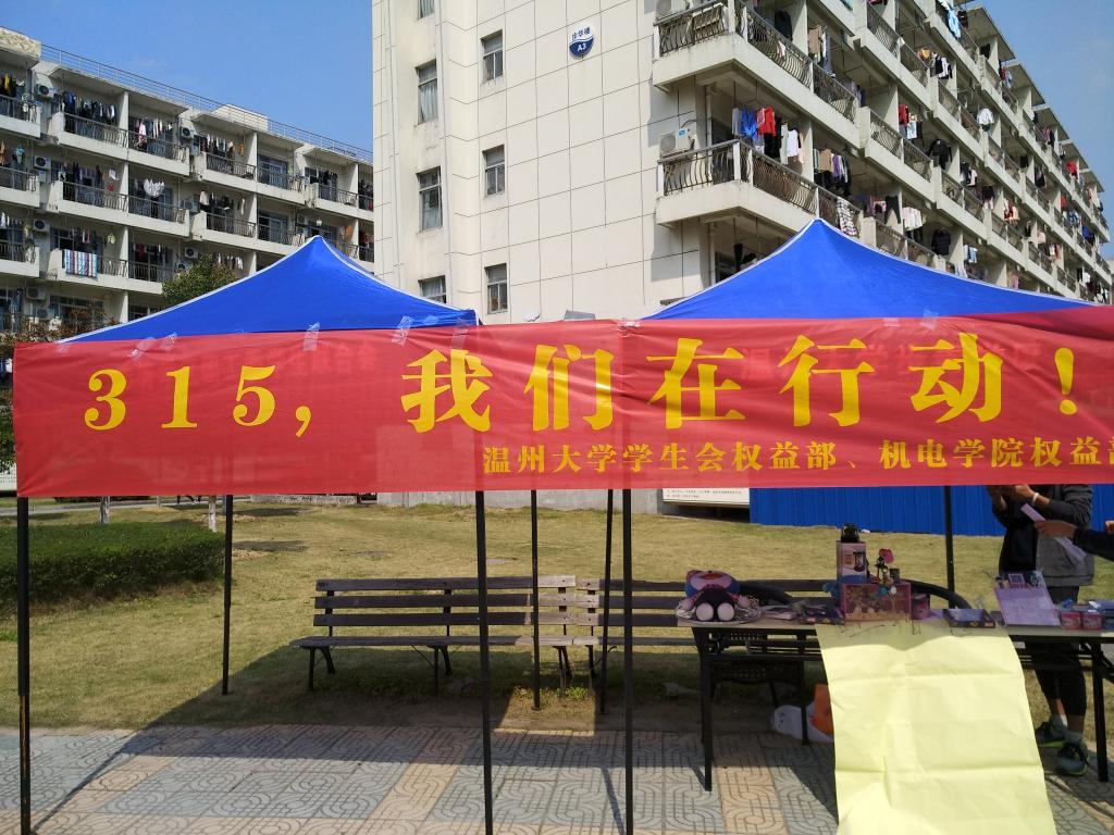 2018年3月14日双赢彩票 院权益部与双赢彩票 学生会权益部于A区主干道联合举办了3·15维权日维权知识有奖答题活动。双赢彩票 学生会权益部与机电双赢彩票 权益部的干事为本次活动的主办人员,经过前期向学区自委会办公室申请场地以及向A区学生联合会申请借用桌子椅子和帐篷,筹备奖品等准备活动后,我们迅速搭建好了场地并摆放好了奖品,等待同学们前来参加活动。