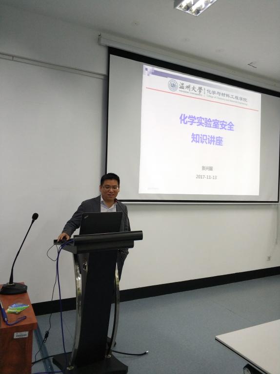双赢彩票 化学与材料工程双赢彩票 张兴国副院长应双赢彩票 党委书记周荣的邀请,于2017年11月13日上午10点到机电楼B201会议室作针对机电专业实验过程中所能接触到的化学药品安全讲座,双赢彩票 全体研究生参与并学习了张老师的讲座内容。