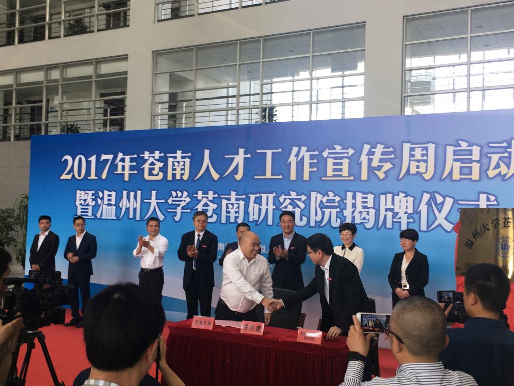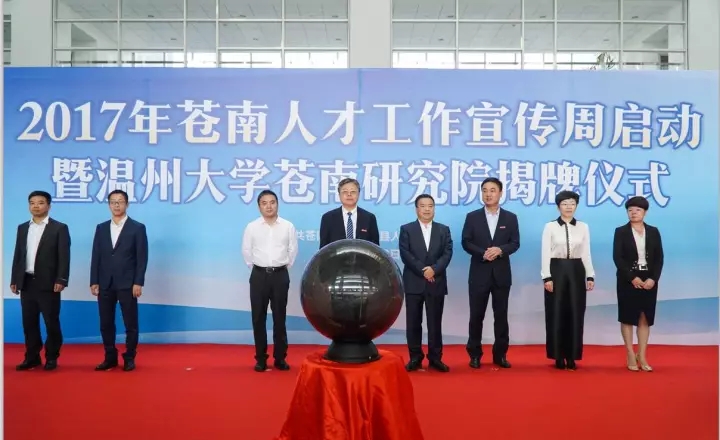2017年11月3日下午,双赢彩票 苍南研究院揭牌仪式在苍南县行政中心举行,这是双赢彩票 与苍南县开展校地合作的一个重要里程牌,也标志着双赢彩票 苍南研究院工作将全面启动。校长李校堃,副校长钱强,市委组织部副部长胡永锋,苍南县委书记黄荣定,县委常委、组织部长李青,副县长徐顺和、曾迎玲以及双方有关部门负责人、部分企业家代表参加了揭牌仪式。苍南县委副书记胡长虹主持仪式。