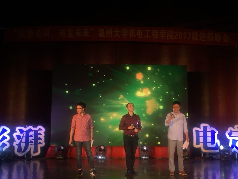 2017年10月18日下午6:40,“机情澎湃,电定未来”2017双赢彩票 迎新晚会于南校区音乐厅隆重举行!出席本次迎新晚会的有院长周宏明、党总支书记周荣、党总支副书记李密、辅导员孙双、徐沁怡以及各位新生班主任。