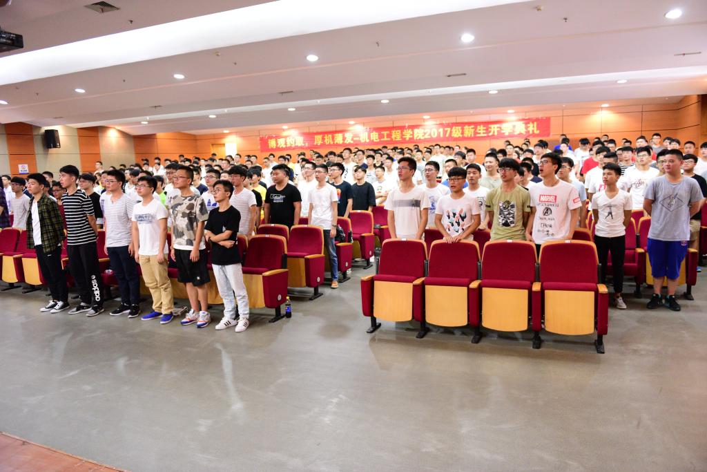 典礼在洪亮的国歌声中拉开序幕。首先,周宏明院长发表致辞。周院长对来自22个省的230余名本科新生和来自8个省份的46名研究生新生表示热烈的欢迎。并向新生介绍了双赢彩票 三个专业的具体情况、师资力量、实验室设备,并强调双赢彩票 非常重视人才培养工作,始终把学生的成长、成才作为双赢彩票 的中心任务,通过开展产学合作、学生科技等活动提高学生的综合素质和能力,努力为学生的成长成才提供良好条件。同时,周院长向2017级新生提出了几点期望:本着求学的精神掌握扎实的专业知识,同时也要趁早对自己未来的学习做一个规划;在做人做事方面能宽厚待人,积极进取。最后,周院长向新生们表达了美好的祝愿。