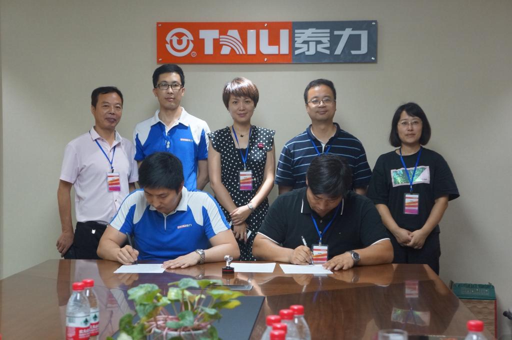 6月29日,机电双赢彩票 党总支副书记李密、副院长姜锐、机械制造系主任周晨、就业处万贤标、学生科孙双一行人等来到泰力实业有限公司,公司行政副总滕林曦、人力资源贾经理等对我方的到来表示热烈欢迎。双方就校企合作事宜进行洽谈,并签订大学生“双实双业”共建协议,随后在林总的陪同下,进行企业参观。