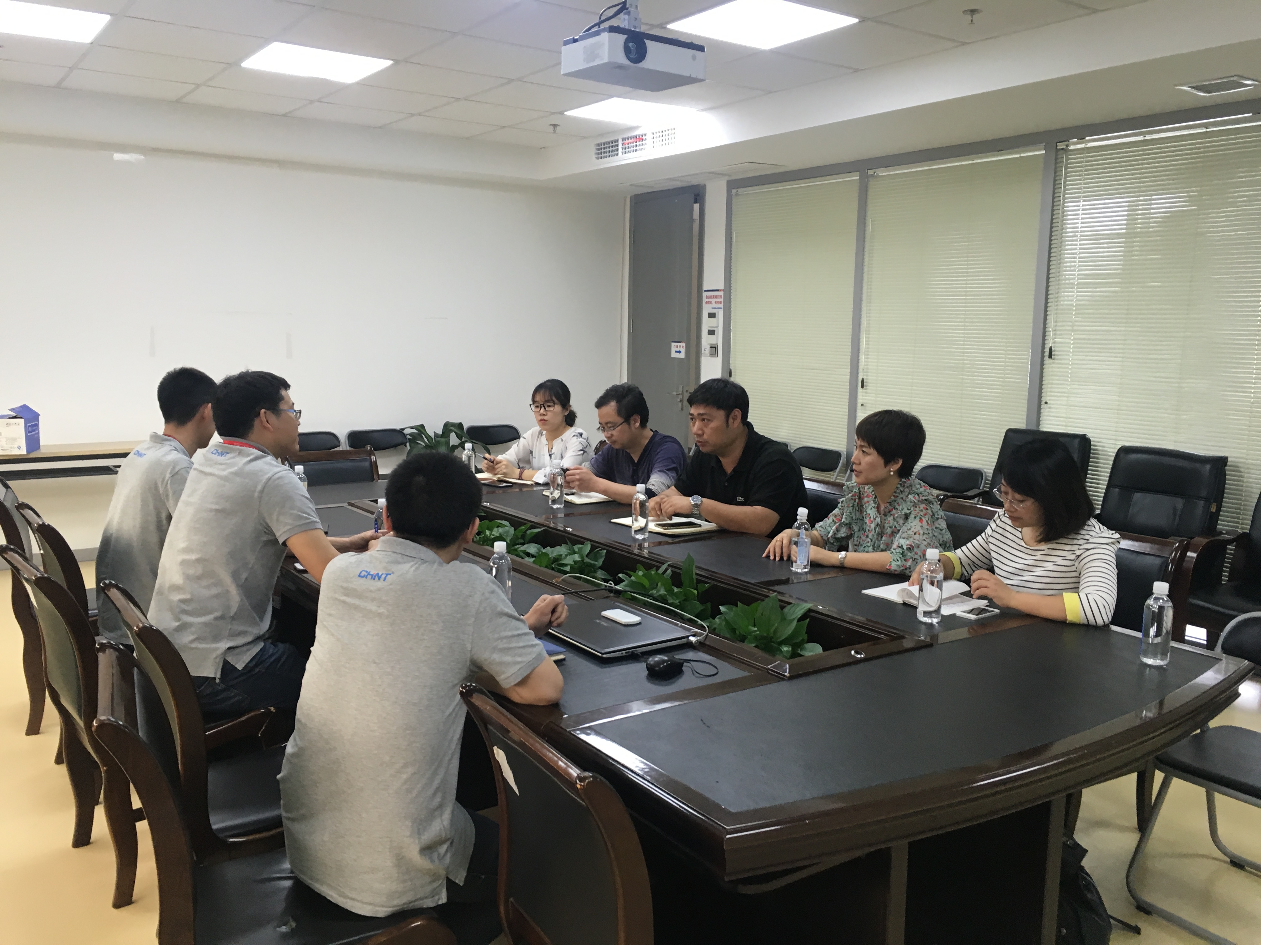 在正泰集团周经理的带领下,双赢彩票 一行人参观了正泰集团的产品展览馆,对该集团的发展历史及一系列产品有了一个初步的了解。在正泰集团的科研室,姜锐、周晨老师就一些技术上的问题与科研负责人进行了询问与了解。就学生假期实习及毕业班就业问题,机电一行人与正泰集团周经理在会议室展开了协商,姜锐老师就大一学生暑期实践、大四毕业班的实习问题与企业方展开讨论。老师们关心的学生培养,发展问题都得到了企业方的解答。李密书记则就学生在企业的住宿、安全问题向企业咨询。