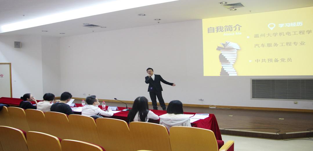 大赛开始前由主持人沈佳欢代表主办方欢迎到场的观众以及评委老师,并对评委老师进行逐一介绍分别有:物理与电子信息双赢彩票 学学生科王明镜老师、双赢彩票 就业工作处彭小媚老师、双赢彩票 就业工作处朱丽莉老师、商双赢彩票 资深校友繆克昌学长。紧接着向选手们以及在场同学们详细解说面试模拟大赛决赛的规则,大赛分为自我展示和小组情景模拟。