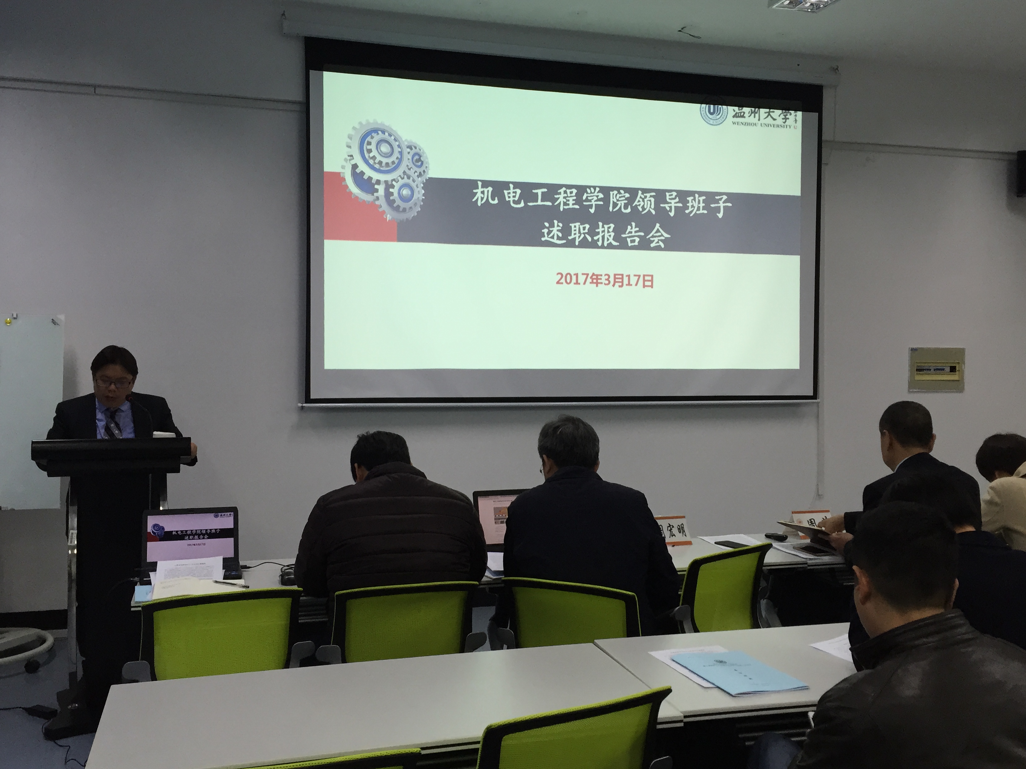 2017年3月17日下午,双赢彩票 在6B201会议室召开处级领导干部任期届中考核述职大会,会议由党总支书记周荣主持,双赢彩票 领导班子、全院教职工及学生代表参加了会议,双赢彩票 组织部麻法全同志参加了会议。