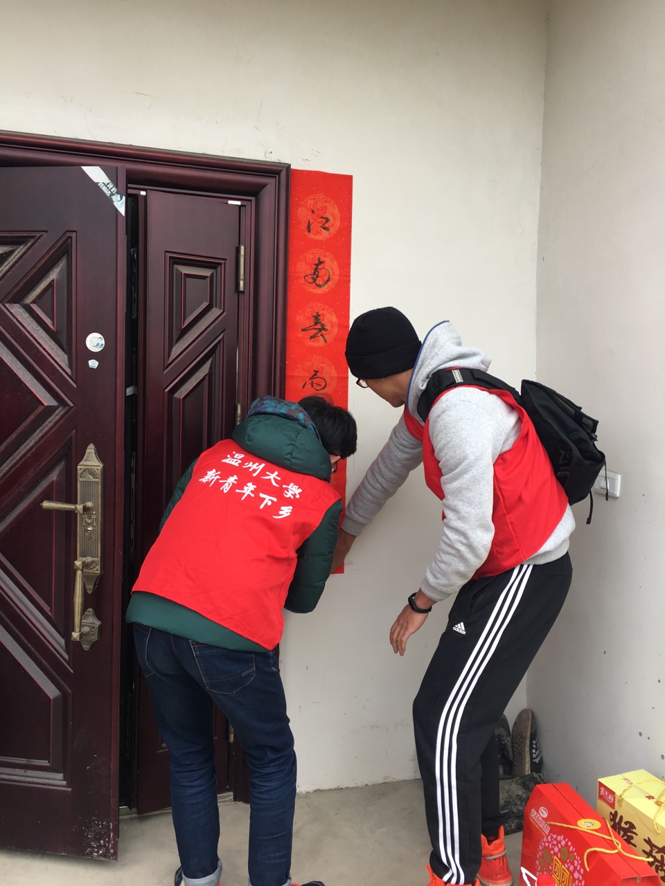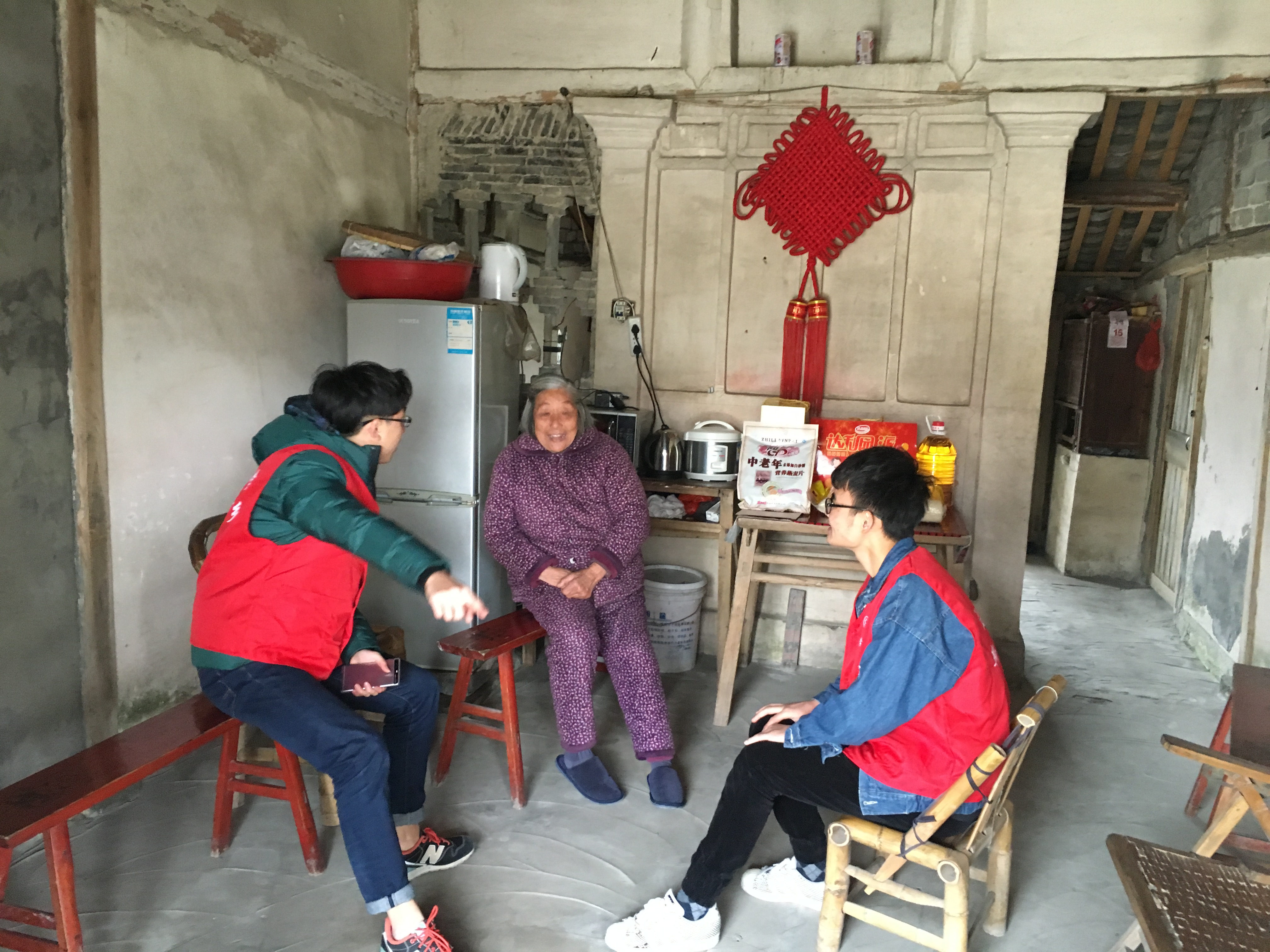 来自机电双赢彩票 的新青年们在双赢彩票 老师以及灵昆街道九村村村委宋书记的带领下来到了灵昆街道九村的几户孤寡老人家中,为他们送去了寒冬中的温暖。长久独居的老人见到了新青年们的到来显得无比的高兴,虽然在方言交流上遇到了一点困难但是新青年们用朴实的行动来给老人们送去温暖。大家给老人送上了生活必须的大米、油以及一些营养品,爷爷奶奶们忙着招呼大家坐下,感谢同学们在年关赶来为他们送上温暖。新青年们与老人聊起了生活上的各方面,老人们向大家诉说了生活上的种种不易,但是爷爷奶奶们依然能够乐观的面对,他们说道这也离不开像新青年们这样的来自社会各界、政府对他们的关心。大家都表示关心老人家们是新时代青年们应尽的力所能及的一件事,温暖老人,同时也是对于社会的一种回馈。与此同时,新青年们为老人们送去自己书写的春联,为老人们摘去家中长久未更换的春联,贴上饱含暖意的崭新的春联以及福字。