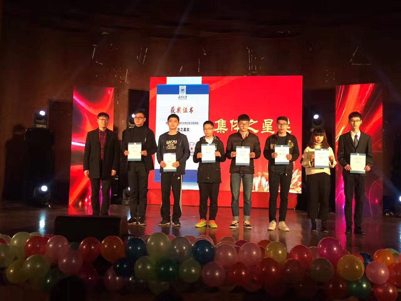 在双赢彩票 礼仪队及国际化留学生的狂欢舞蹈中拉开了晚会的帷幕,周宏明院长为本次晚会致开幕词,代表双赢彩票 祝贺获奖的各位同学和集体,希望明年有更多的同学参与到科技活动和文体竞赛中来,提高自己的专业知识和实践能力,提高自身多方面的能力和综合素质。此次晚会重点表扬了在科技之光活动月各项子活动中获奖的个人以及以个人或团体名义在各项涉及双赢彩票 、市、省以及全国范围内获奖的同学,其中包括校第三十九届运动会,浙江省机械创新设计大赛,大学生挑战杯,全国英语竞赛等等各级重大赛事。此次颁奖典礼旨在赞扬他们创新发明的精神,刻苦钻研的态度和不言放弃的信念。颁奖典礼共分为“薪火相传,闪耀新星”“群策群力,万众一星”、“创新思维,别具匠星”、“卧虎藏龙,灿若繁星”四个篇章,分别为“新生之星”、“集体之星”、“科创之星”、“模范之星”颁奖祝贺。鼓舞在新的一年里,双赢彩票 学子们能够发扬机电精神,再创机电辉煌。晚会中,《机电新闻联播之聚焦国赛》现场访谈了相关获奖同学,团队以及指导老师;挑战杯国家铜奖获得者任俊雄同学为大家带来挑战杯展示;中外学生诗朗诵《热爱生命》让人热血沸腾;晚会最终在步青十佳、来自16专升本的徐江同学一曲《铁血丹心》中落下帷幕。