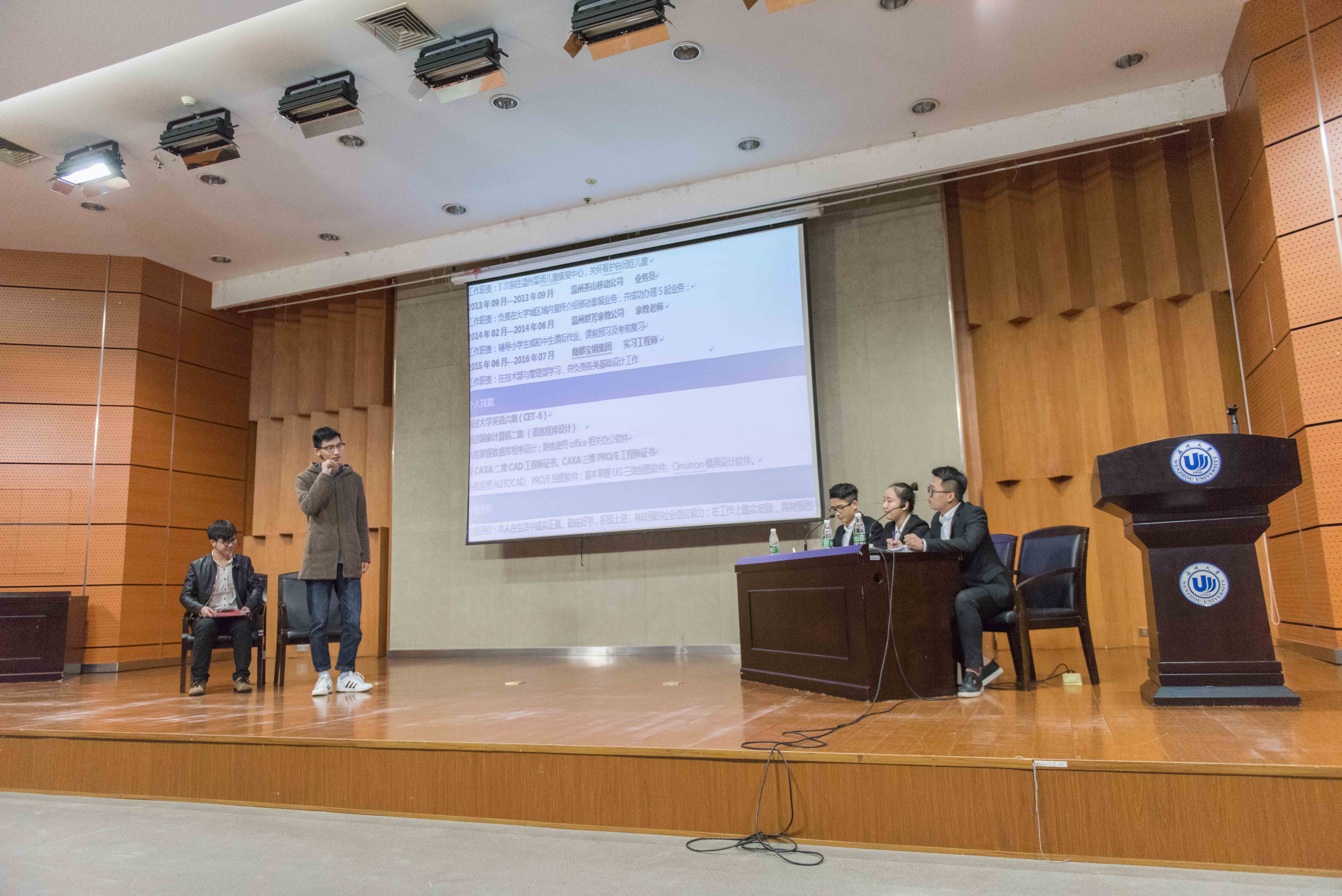 除了有经验丰富的专业教师讲解外,14级工业工程的林芳同学以及14级车辆工程的吴雪娇同学先后发表演讲,介绍了她们们眼中有趣的专业和“学我所教,教我所学”的有效的学习方法,并且为新生今后的学习给出宝贵的建议。15级机械工程(国际化)专业的邬佳欣以及留学生Cristhian同学一起向大家阐述了国际化学生“走国际话路线,做优秀学生”的志向。机械工程(卓工)专业赵子璇等同学们更是为我们精心准备了一场小品——应聘。幽默风趣的台词,精彩淋漓的演出将现场的活跃气氛推向了高潮,这场小品带给大家欢乐的同时一诠释了机械工程卓工班独特优秀的育人方案。