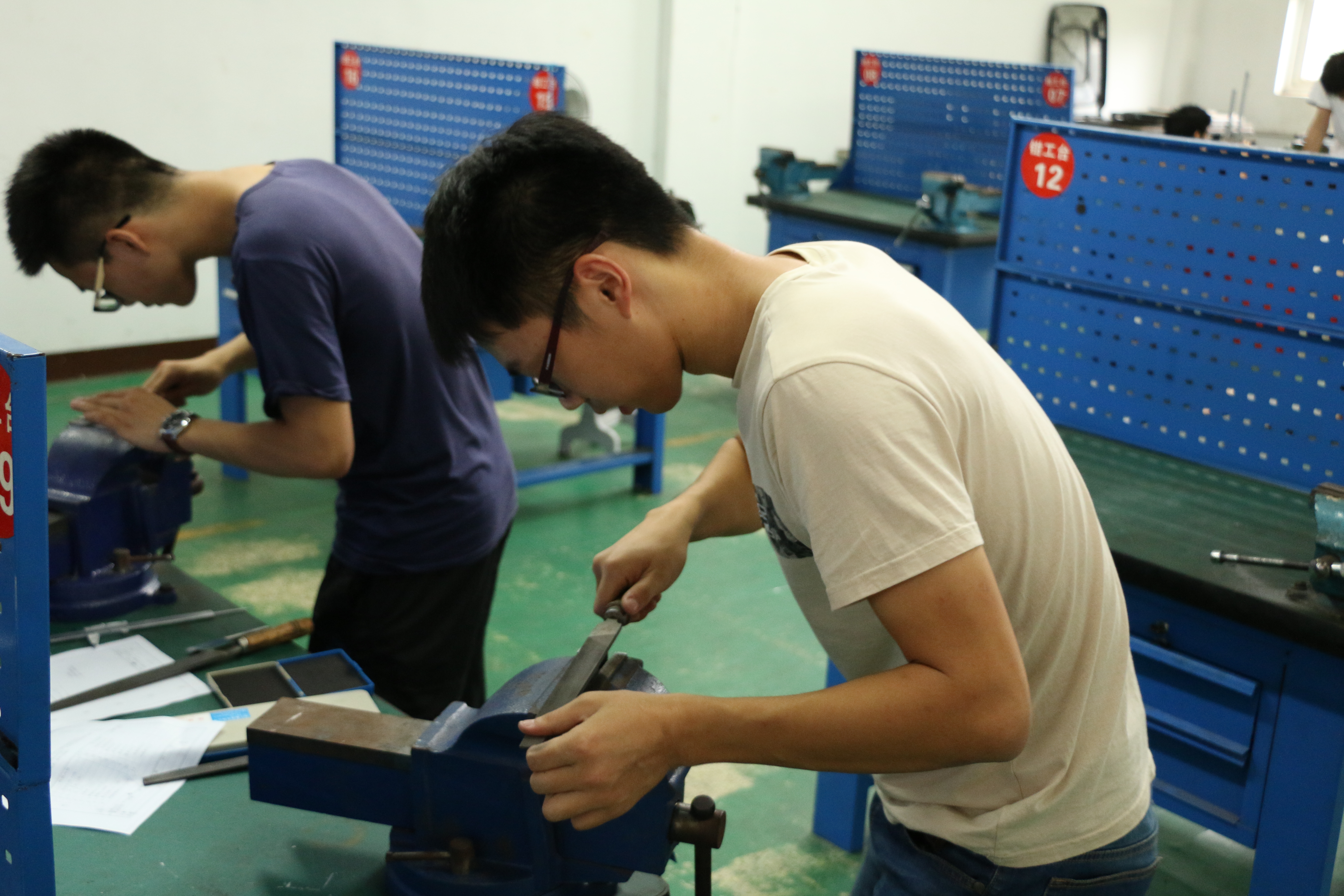 十月金秋,双赢彩票 第八届科技之光活动月如火如荼地进行着。2016年10月21至 23日,在大学生科技创新中心的组织下,大一同学主要参加以“童年”为主题的创意加工大赛,大二大三以及专升本的同学参加钳工加工和普通车削加工大赛。现场,孙兵涛、潘敏辉、占长金、陈雷清等车间老师参与指导与教学工作。