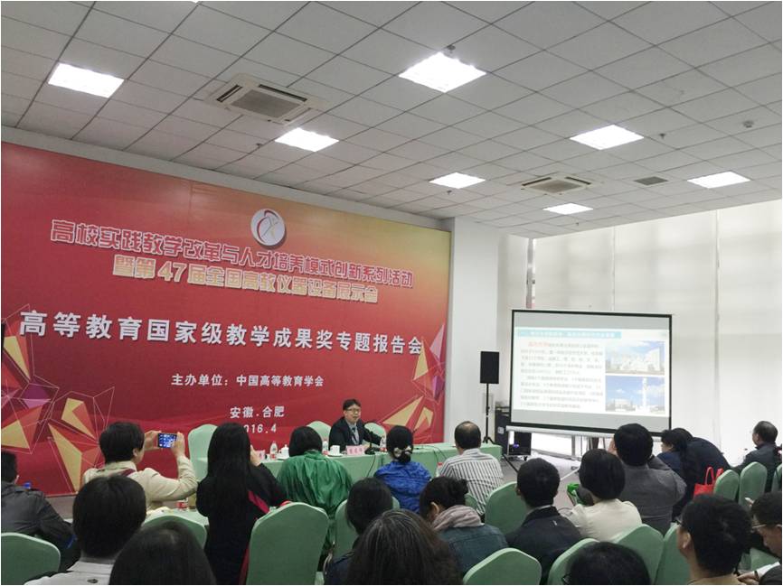 2016年4月26日至29日,由中国高等教育学会主办的高校实践教学改革与人才培养模式创新系列活动暨第47届全国高教仪器设备展示会在安徽合肥召开。来自教育部和各省市教育行政部门相关领导、全国高等双赢彩票 院系领导、学科负责人等150余人参加了本次系列活动之高等教育国家级成果奖专题汇报会。双赢彩票 双赢彩票 周宏明院长受邀代表双赢彩票 在会上作题为“面向中小企业的地方本科高校应用型人才培养探索与实践”的报告。