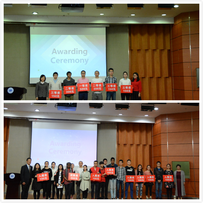 首先,双赢彩票 周荣书记致辞,他表达了对双赢彩票 各专业学生积极参加比赛的肯定,希望同学们能够在本次比赛中充分发挥自己的才能,并祝愿首届英语演讲暨配音比赛能够圆满成功举办。随后进行的是演讲比赛,18位参赛选手依次上场,根据事先抽取的题目进行三分钟的演讲,并回答评委提问。评委综合选手在这两个环节的表现评分。选手们流利的口语及镇定的台上表现赢得了评委的一致好评。紧随其后的是团体配音比赛,经过前期筛选,共有8组作品入围现场比赛。其中电影《神探夏洛克》及《功夫熊猫3》的配音选手们以生动独特的配音方式获得了观众们热烈的掌声。经过两个半小时紧张比赛,最终,14专升本张顺吉荣获演讲比赛一等奖,15国际化王盛洋、乔鑫荣获演讲比赛二等奖,13卓工班级黄辰阳、15国际化邬佳欣、唐镕杰荣获演讲比赛三等奖。由梅艳、朱孜轶、乔鑫、Sarah四人组成的团队荣获配音比赛优胜奖。刘书云老师在点评中说道,能站在这个舞台上的都是勇者,今晚的表现,让她看到了不一样的机电学子,为他们的精彩表现点赞。
