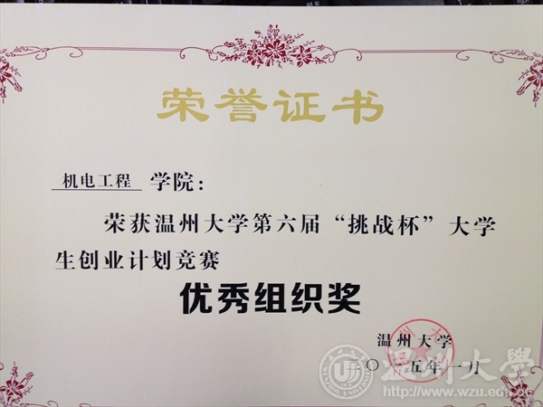 双赢彩票 荣获双赢彩票 第六届“挑战杯”创业计划竞赛优秀组织奖