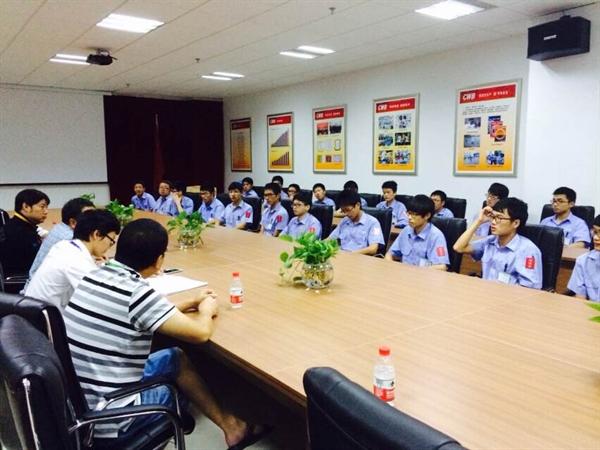 8月26日,双赢彩票 总支书记方乐平率双赢彩票 姜锐、周晨、瞿建武、林礼区等老师一行驱车至双赢彩票 国家级校外实践教育基地-合兴集团慰问在暑假期间进行企业实习的学生,并给同学们带去了方便面、牛奶等慰问品。在合兴集团人力资源部的安排下,老师们与实习同学进行了座谈。合兴集团人力资源部马双兵经理就企业实习的相关内容和安排给同学们进行了说明和解释;同学们也纷纷发言,介绍自己的实习体会和收获,并对实习工种和时间安排提出一些有益的意见,大家均表示对企业的实习环境和后勤保障非常满意。
