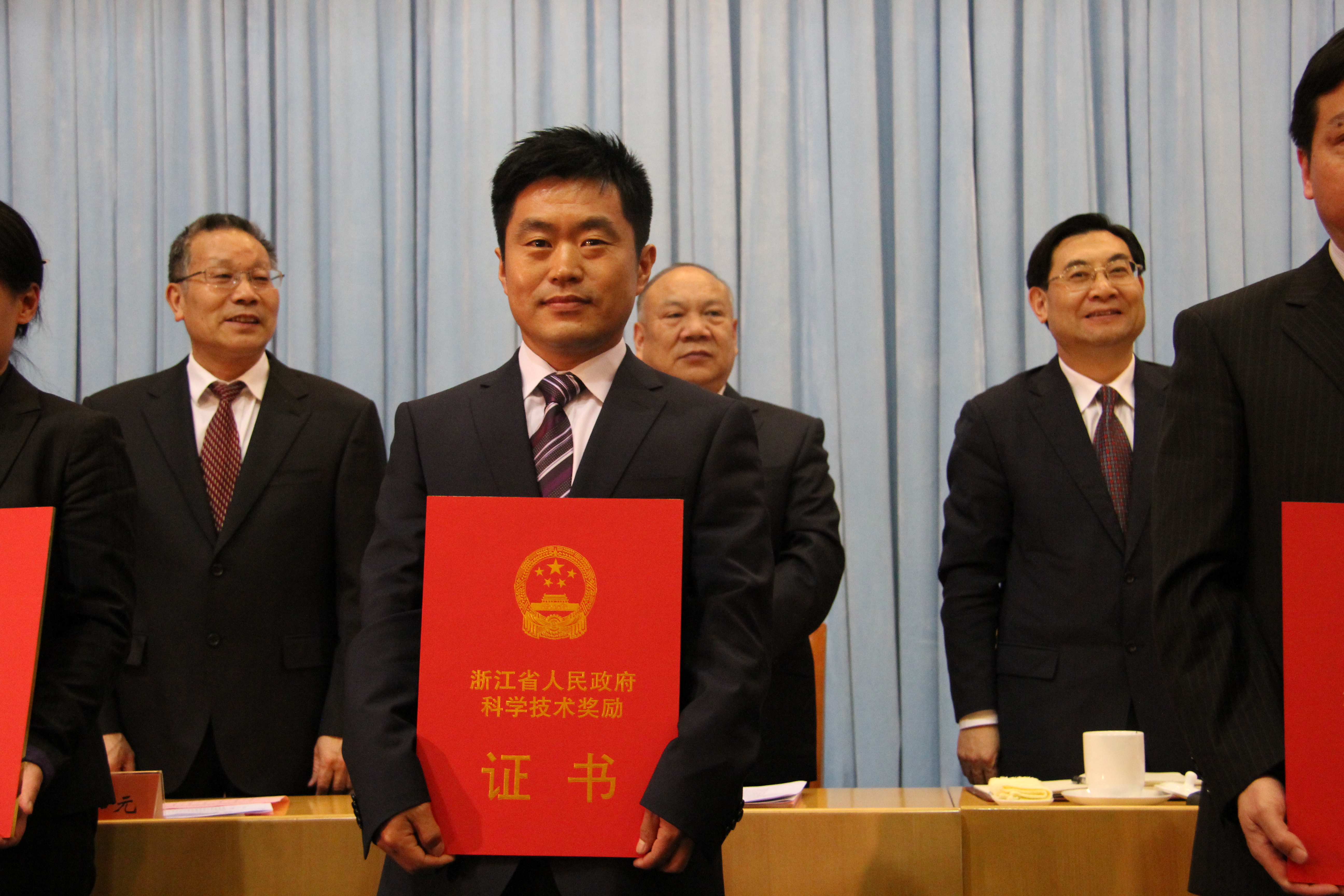 4月29日,浙江省科学技术奖励大会在浙江省人民大会堂召开,省委书记、省人大常委会主任夏宝龙、省委副书记、省长李强等省领导出席了会议,并为获奖个人及单位进行了颁奖。