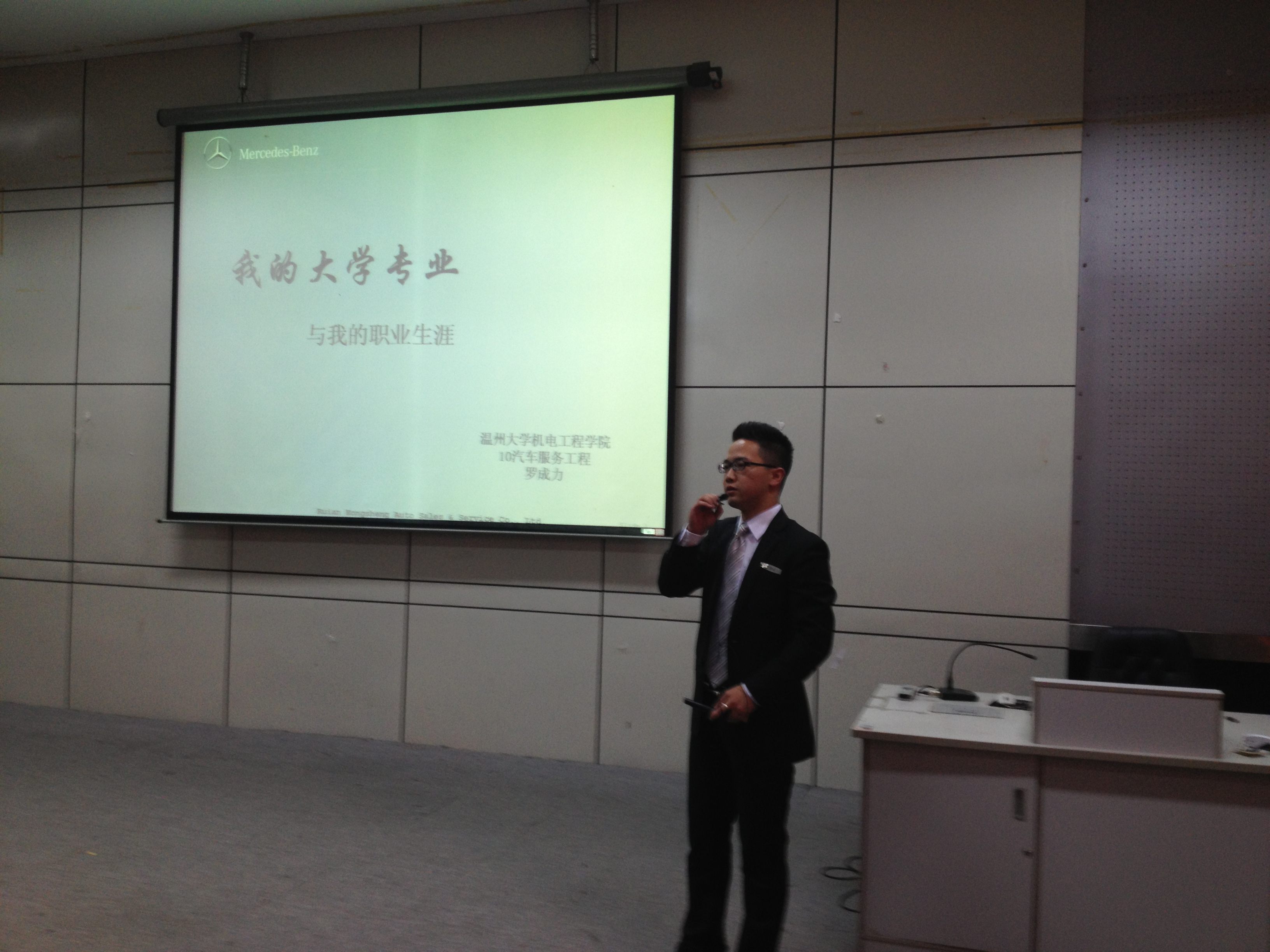 在观看中央电视台记录新中国工业崛起的长歌史诗《大国重器》视频片段后,周宏明院长分析了制造业发展、现状和就业前景,强调双赢彩票 各专业毕业生具有宽领域工程技术适应性,就业面很广,就业率高。他同时介绍了机电双赢彩票 的整体师资力量、教学科研水平以及在人才培养中的取得的成果,并对各个专业进行了精简的概括。制造业发展状况就业12机自张菲、10工业工程徐海洋和邵瑞阳、11汽服管倩倩同学分别以视频、PPT等生动活泼的形式,主持了各专业宣讲活动,同时,他们作为学长代表,就各自所学专业,向学弟、学妹们进行了学习交流。已在奔驰公司实习的大四汽服专业罗成立学长为大家带来真实的职场经历分享,让大家对专业知识技能与工作的关系有了更深层次的认知。
