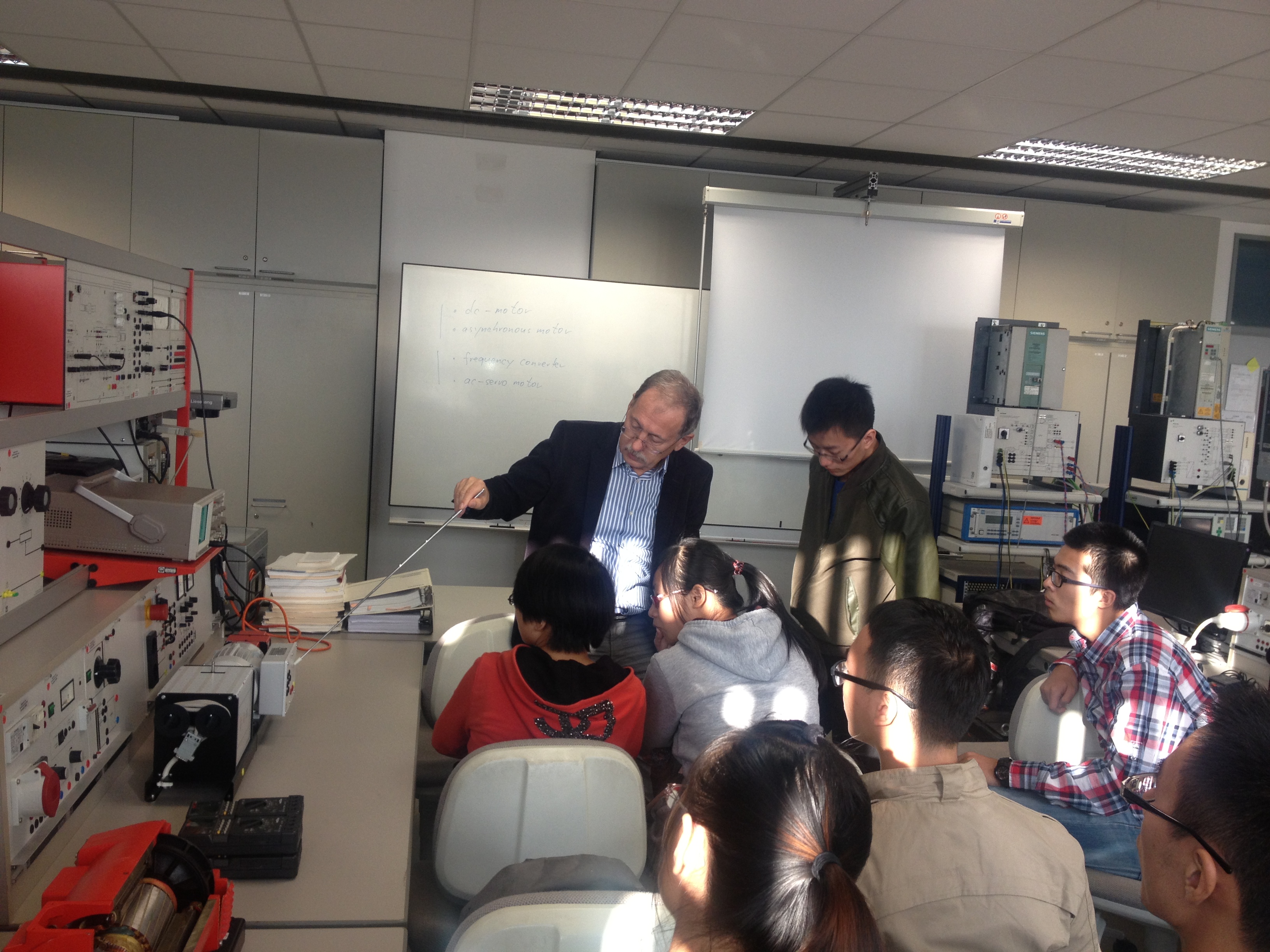 图3 Dittrich教授向同学们介绍电动机实验台