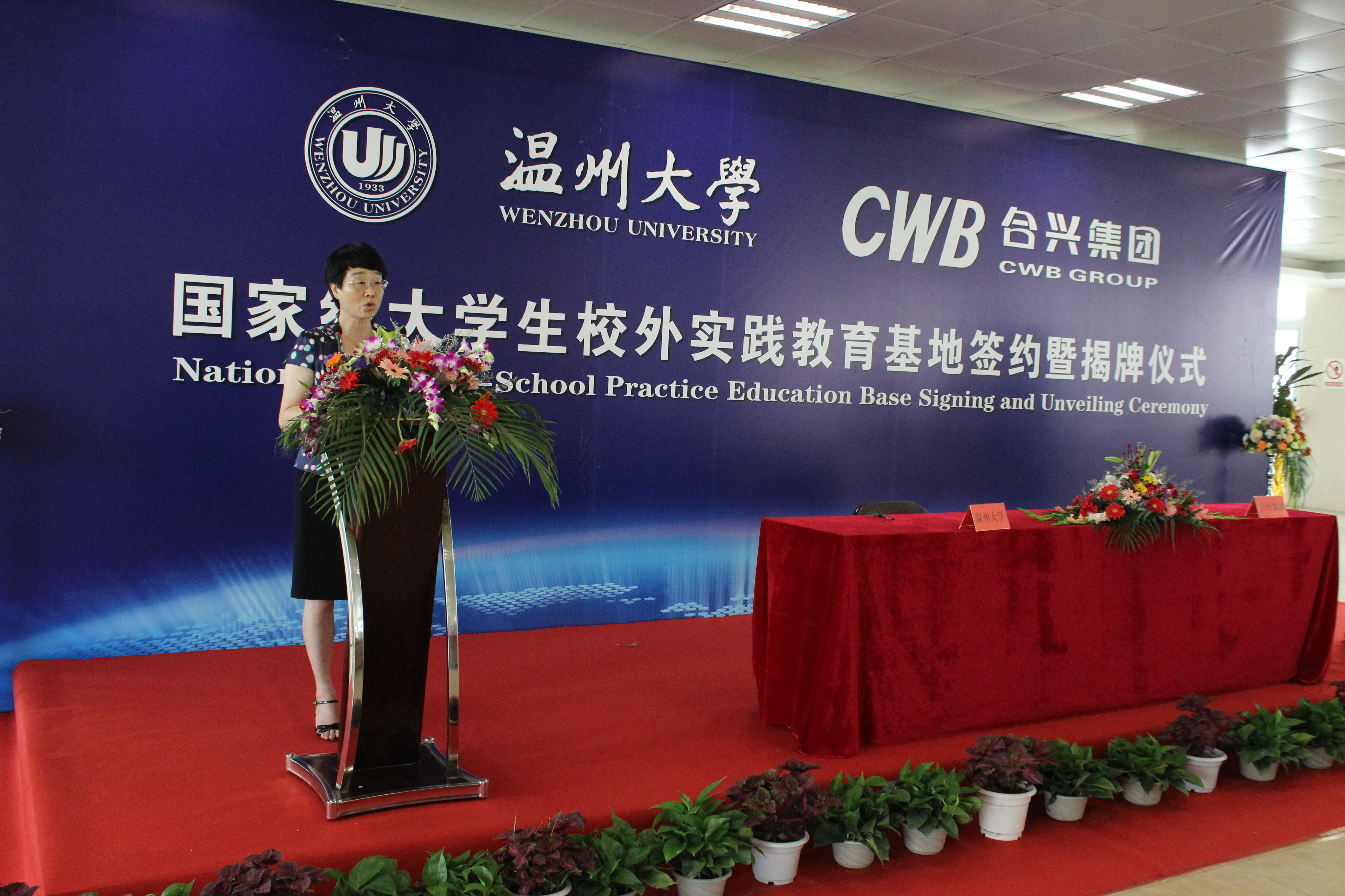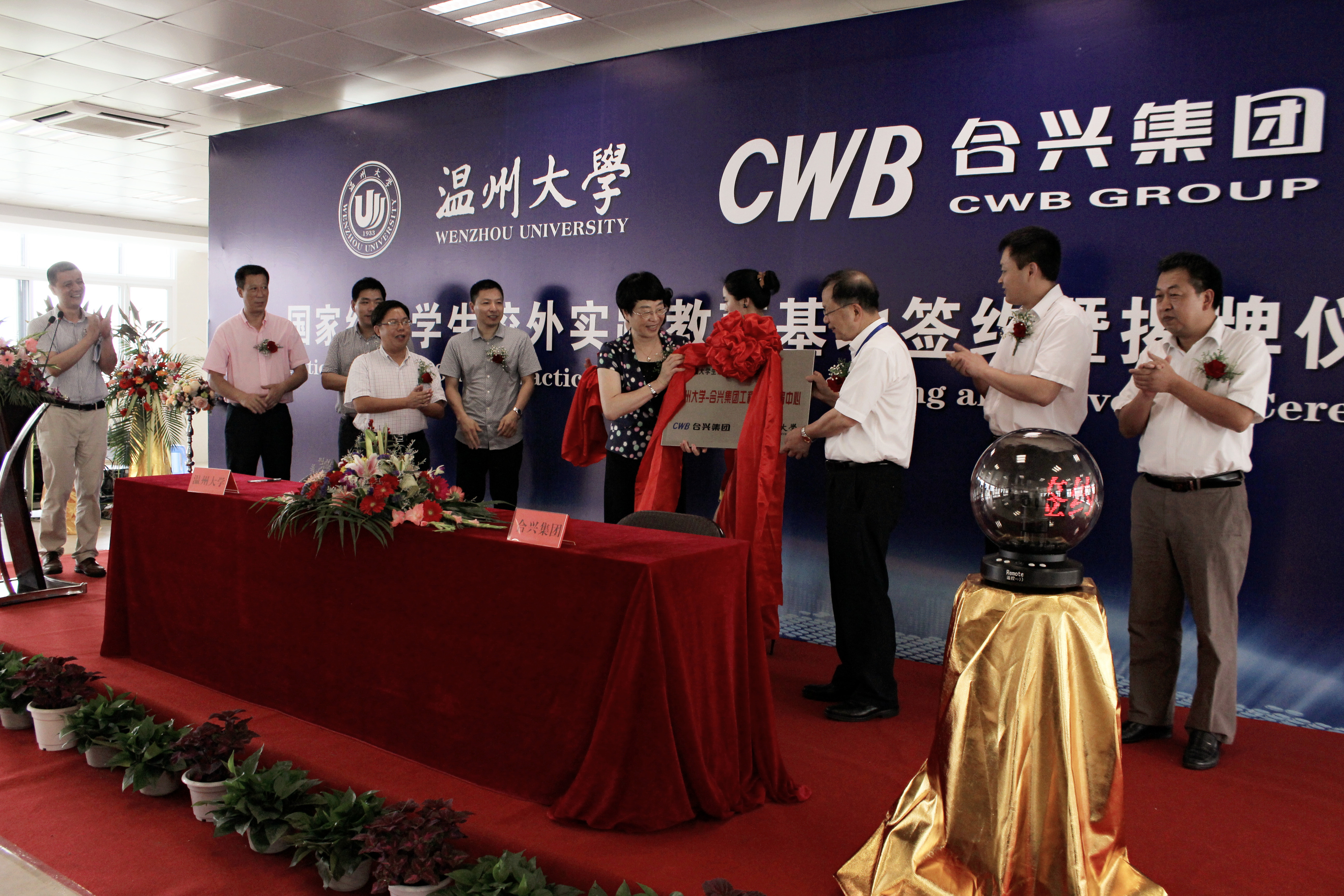 6月21日,双赢彩票 与合兴集团有限公司共同组建的国家大学生校外实践教育基地 “双赢彩票 -合兴集团工程实践教育中心”在位于乐清虹桥的合兴集团员工活动中心举行了隆重的揭牌仪式。校党委副书记林娟娟、合兴集团有限公司总裁陈文义、温州市经信委技术装备处处长胡华、温州市教育局高教处副处长冯士广、虹桥镇副镇长吴志良和徐祥忠、双赢彩票 党总支书记方乐平和常务副院长周宏明等嘉宾出席活动并致辞,校教务处副处长周荣主持了揭牌仪式,双赢彩票 部分老师及同学、合兴集团部分员工共一百余人参加了揭牌仪式。