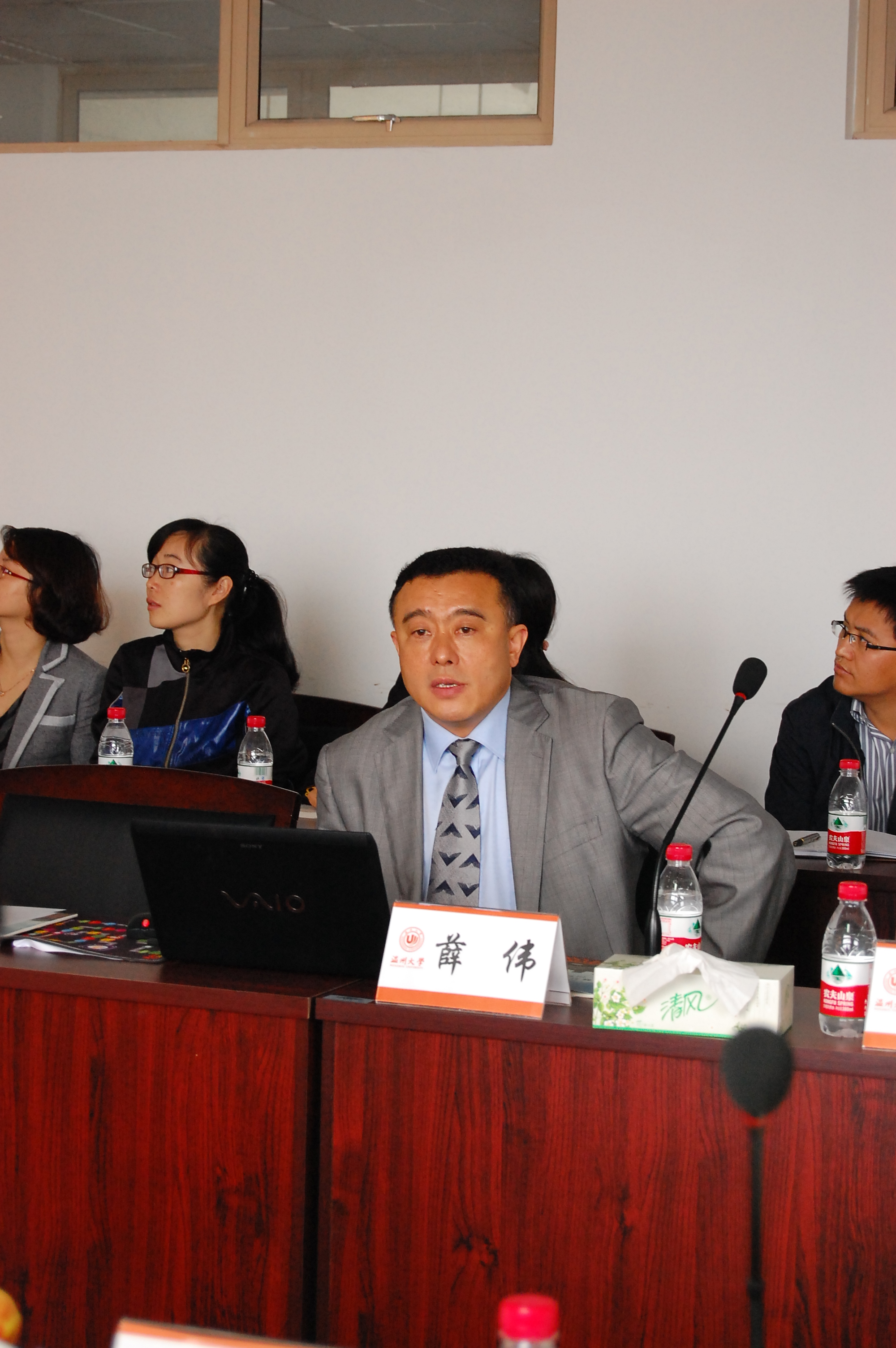 林振权处长首先致欢迎辞。副校长薛伟教授作为基地负责人向专家组作了专题汇报。他从基地概况、基地队伍、研究方向、学术交流、人才培养、主要成果等方面向专家组作了详细汇报,并对专家组提出的问题进行一一解答。