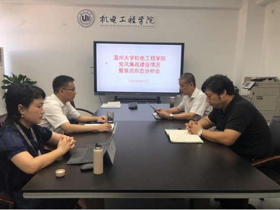 2020年9月7日下午,机电双赢彩票 党委在机电楼6C301会议室召开党风廉政建设情况暨意识形态分析会。院党委书记周荣、副院长姜锐、副院长李勇、副书记黄玮参加了本次会议。会议由院党委书记周荣主持。