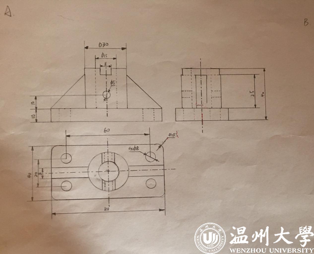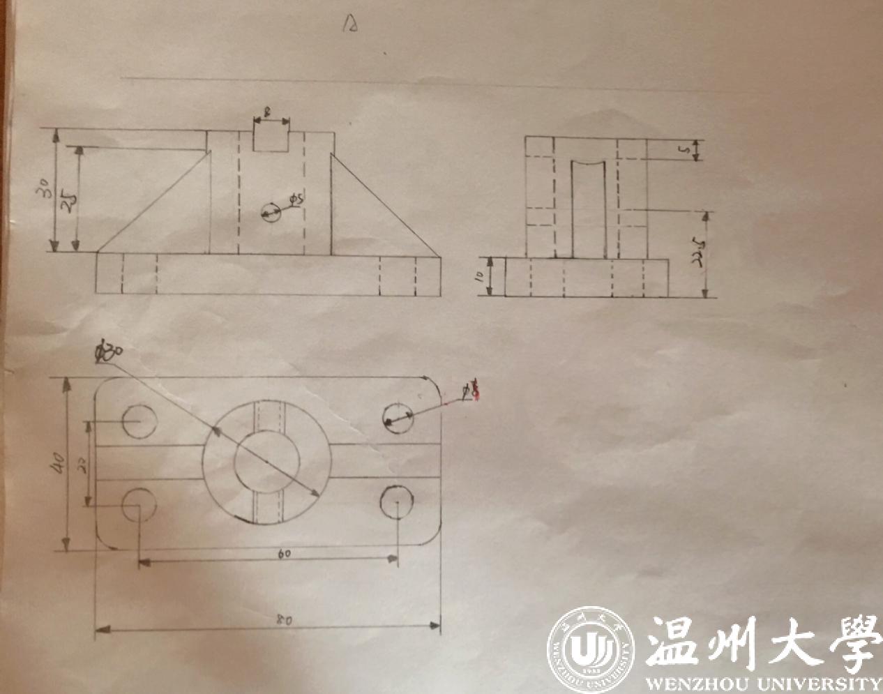 1.此次周六下午的机械制图考试,考查了我们的三视图,尺寸标注以及空间想象能力,对我的画图能力是又一次的提升,加深了对尺寸标注的理解与记忆。考前还是比较自信的,因为只有两道题我觉得应该很快就好了,但在考试的时候发现并没有我想象的那么简单,制图的学习果然还是任重而道远啊。