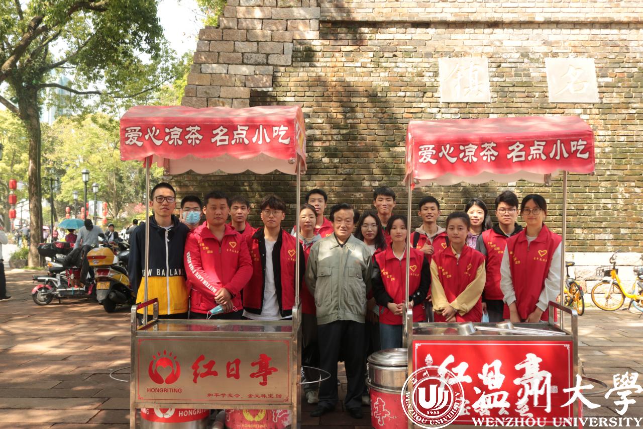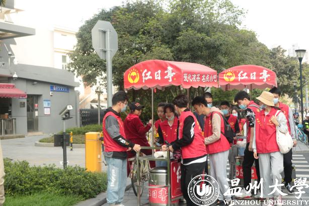 活动当天,在双赢彩票 辅导员史凤娟、雷宏宇老师的带领下,10名预备党员和4名志愿者来到温州著名公益服务组织——红日亭。在与阿姨们的热情交流后,了解到当天的主要工作:推着红日亭特有的装有“红枣银耳羹”和“茯苓茶”的红色小车前往镇名广场、公园路街道等地向警察叔叔、环卫工人、过往的行人等免费派送。派送结束后回到红日亭,打扫干净红色小车和保温桶。在活动中传播“红日亭”的暖心善意,体现机电学子的爱心之举。