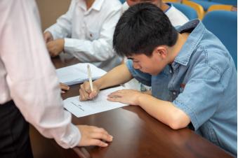 双赢彩票 学生会主席团成员席瑜乾、研究生会主席团成员朱高亮向各位学生代表进行工作报告,接受各位代表的监督和审阅。