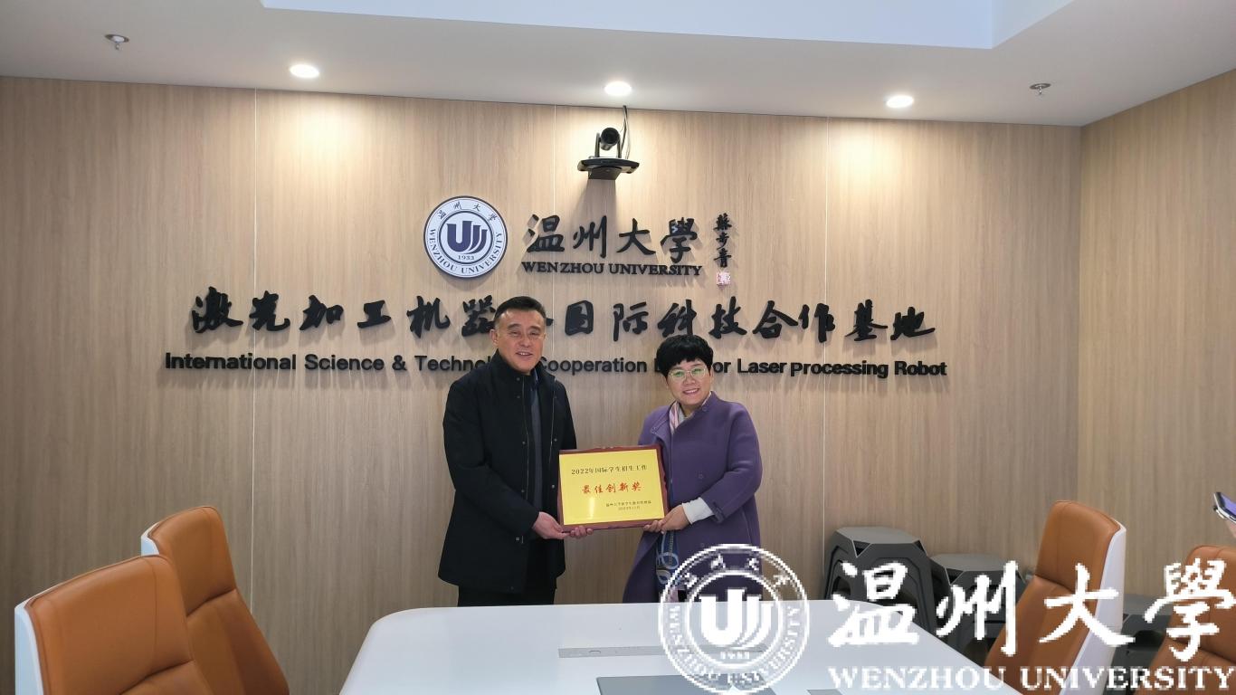 座谈会上,国际教育双赢彩票 院长宋占美高度评价了激光基地对国际研究生招生工作的大力支持,希望将激光基地创新的管理措施和人才培养模式推广到全校,并代表双赢彩票 和留学生教育与管理部向激光基地授予“2022年国际学生招生工作最佳创新奖”。
