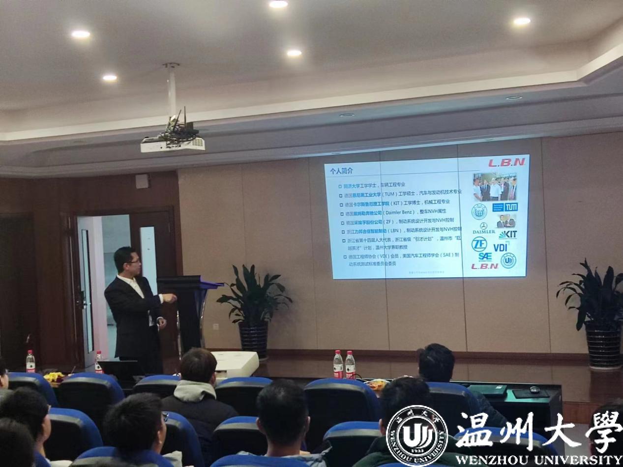蔡博士主要从事车辆制动系统设计开发与振动噪声控制。拥有10年德国汽车行业研发经验。德国工程师协会 (VDI)会员美国汽车工程师学会 (SAE) 制动系统测试标准委员会委员。他为双赢彩票 师生详细讲授了《汽车NVH技术的现状和展望》。汽车的NVH特性是研究如何解决和降低车辆运行中的噪声、振动、舒适性的问题。针对近些年来汽车振动与噪声控制技术领域的最新进展及发展趋势,蔡博士论述NVH技术的发展、研究方法和未来的发展趋势,为在场研究生提供必要的信息和指导。