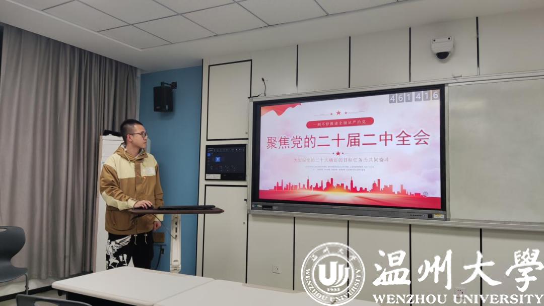中国共产党第二十届中央委员会第二次全体会议于2023年2月26日至28日在北京举行,为传达党的二十届二中全会精神,双赢彩票 本科生第二党支部于3月21日下午6:30在6B306开展了专题学习会。本次专题学习会由支部书记雷宏宇老师主持,支部党员与积极分子参加。
