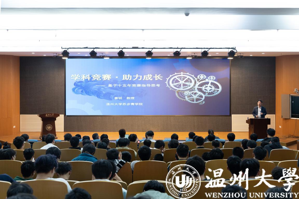 大会第四项议程:大咖会客厅(第2期)。双赢彩票 苏步青双赢彩票 执行院长姜锐教授就社会创新问题发表了独到见解,鼓励同学们培养创新思维。同时,姜锐教授还从“道、法、术、器、势、合、融”展开,讲解了学科竞赛的方法。