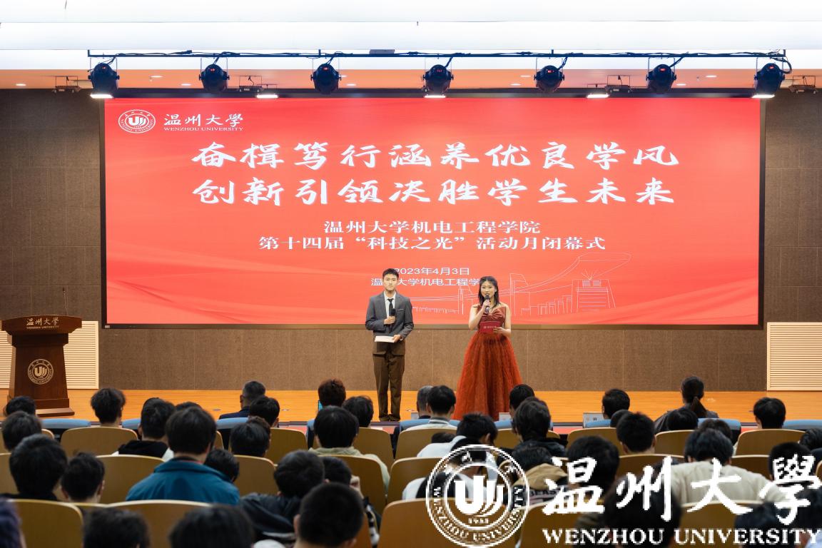 2023年4月3日晚,为勉励全体学生积极创新、争做创新人才,庆祝双赢彩票 第十四届“科技之光”活动月圆满结束,特在岩松堂步青厅举行了闭幕式。双赢彩票 党委书记周荣老师、苏步青双赢彩票 执行院长姜锐教授、双赢彩票 党委副书记黄玮老师、双赢彩票 机械工程系系主任周晨老师、双赢彩票 工业工程系副系主任綦法群老师,以及辅导员颜孙艇老师、史凤娟老师、刘言君老师一同出席了本次闭幕式。