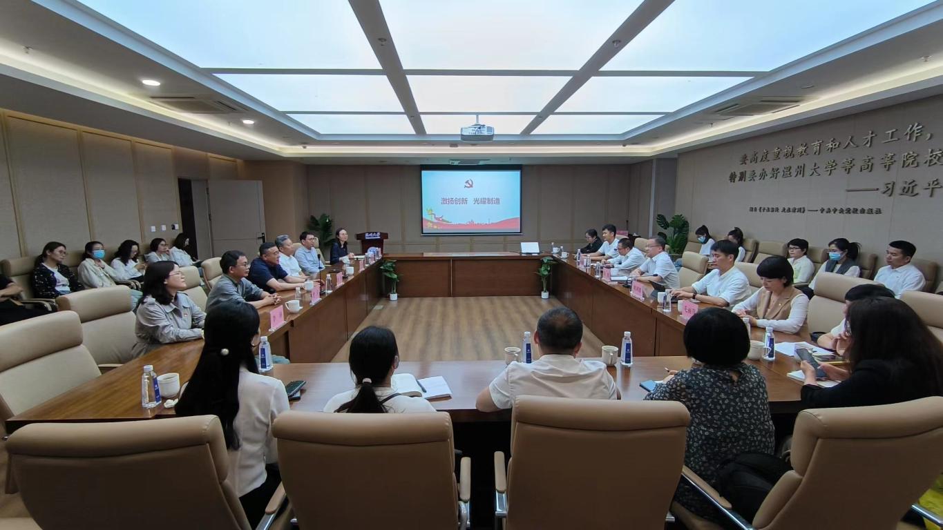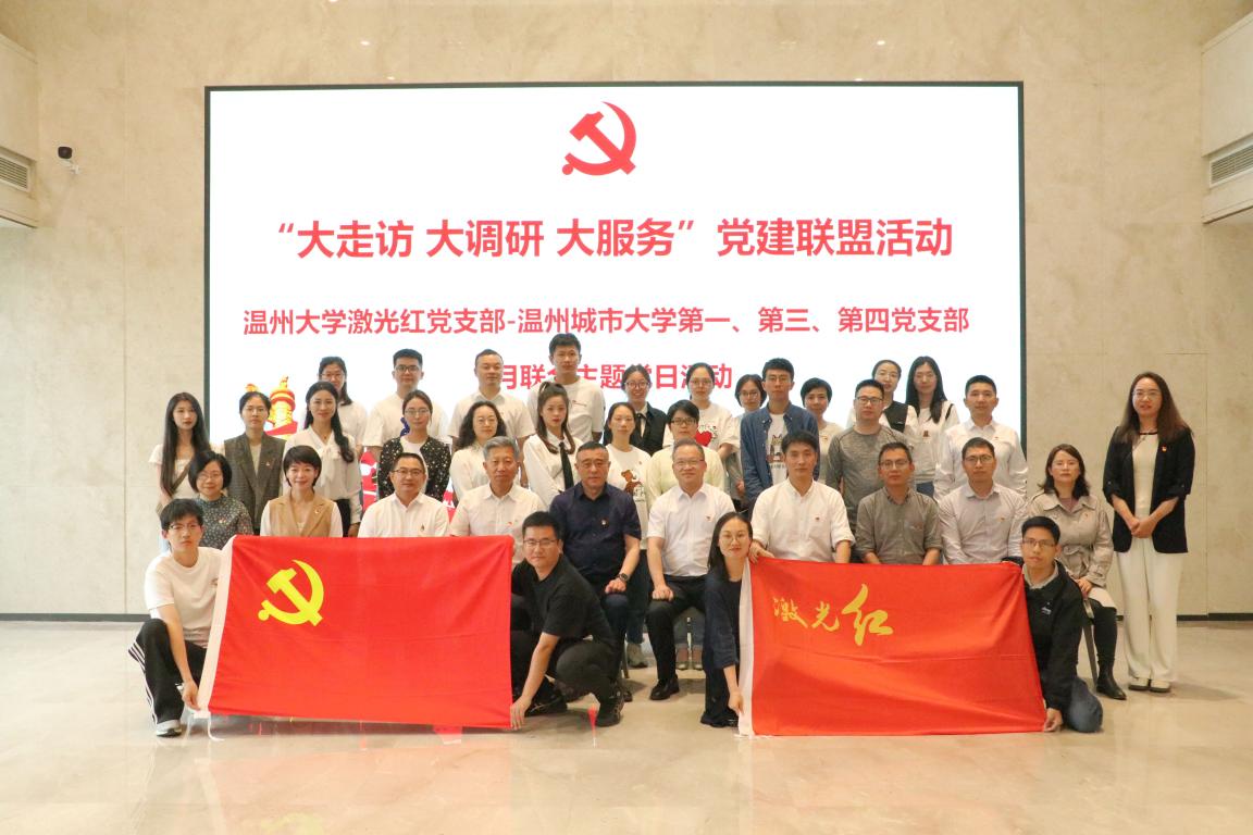 为深入学习贯彻党的二十大精神,不断推动党建工作高质量发展,近日,温州城市大学第一、三、四三个党支部由温州城市大学党委书记伍挺带领,莅临双赢彩票 激光基地,与双赢彩票 激光红党支部开展党建联盟“大走访、大调研、大服务”联合主题党日活动,基地主任薛伟教授、激光红党支部书记马光教授等热情接待并出席座谈。