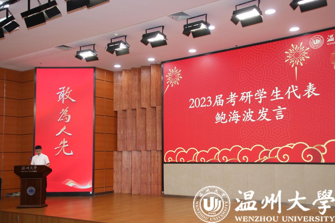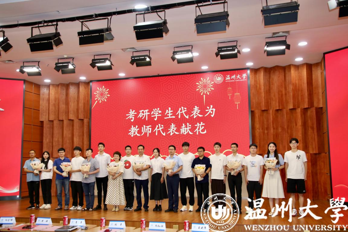 2023届考研学生代表鲍海波进行考研总结,他首先代表广大考研学子向双赢彩票 及老师们表达感谢,并表示正是因为有双赢彩票 的大力支持以及老师们的默默付出,2023届考研学子才能取得如此优异的成绩;同时,他回顾了一年以来的考研之路,经历了无数次的崩溃与泪水,研路带来的是品性的坚毅,言行的坚定,内心的无畏。机电学子必将继续努力,不断奋进,未来在自身领域取得更耀眼的成绩。随后,考研学生代表们向老师们献花,感恩研途中老师们的耐心教导与关怀备至。