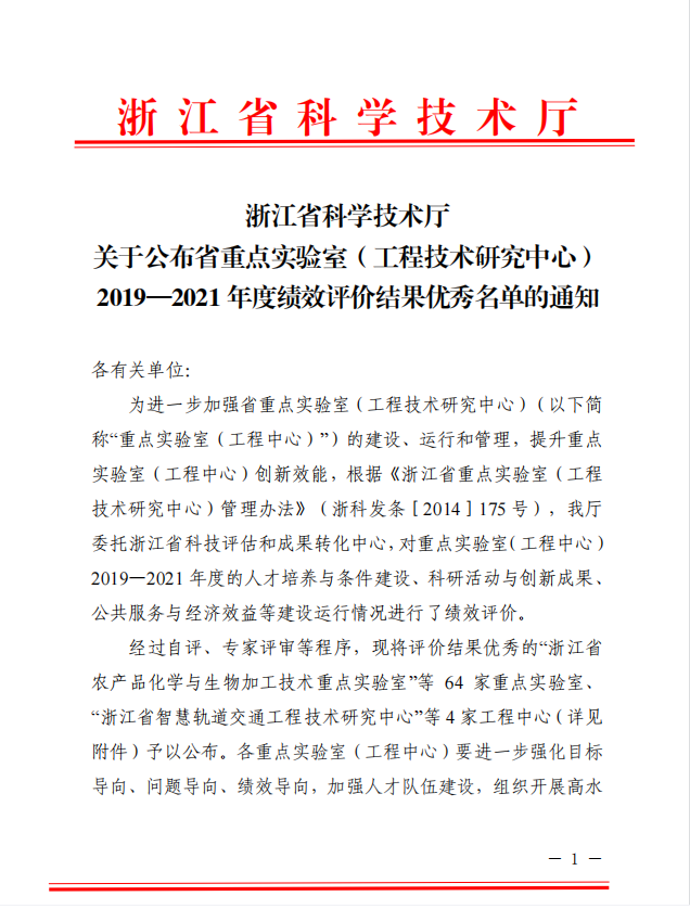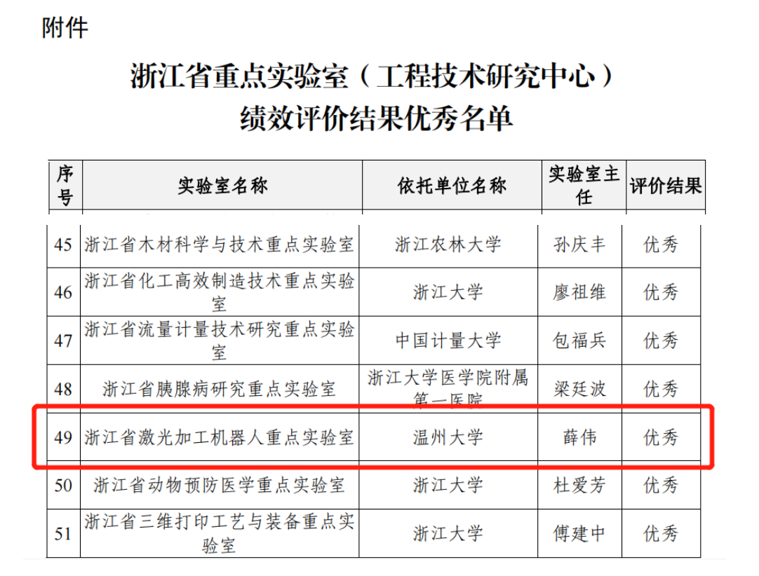 近日,浙江省科学技术厅发布了“关于公布省重点实验室(工程技术研究中心)2019-2021年度绩效评价结果优秀名单的通知”,浙江省激光加工机器人重点实验室获评优秀。