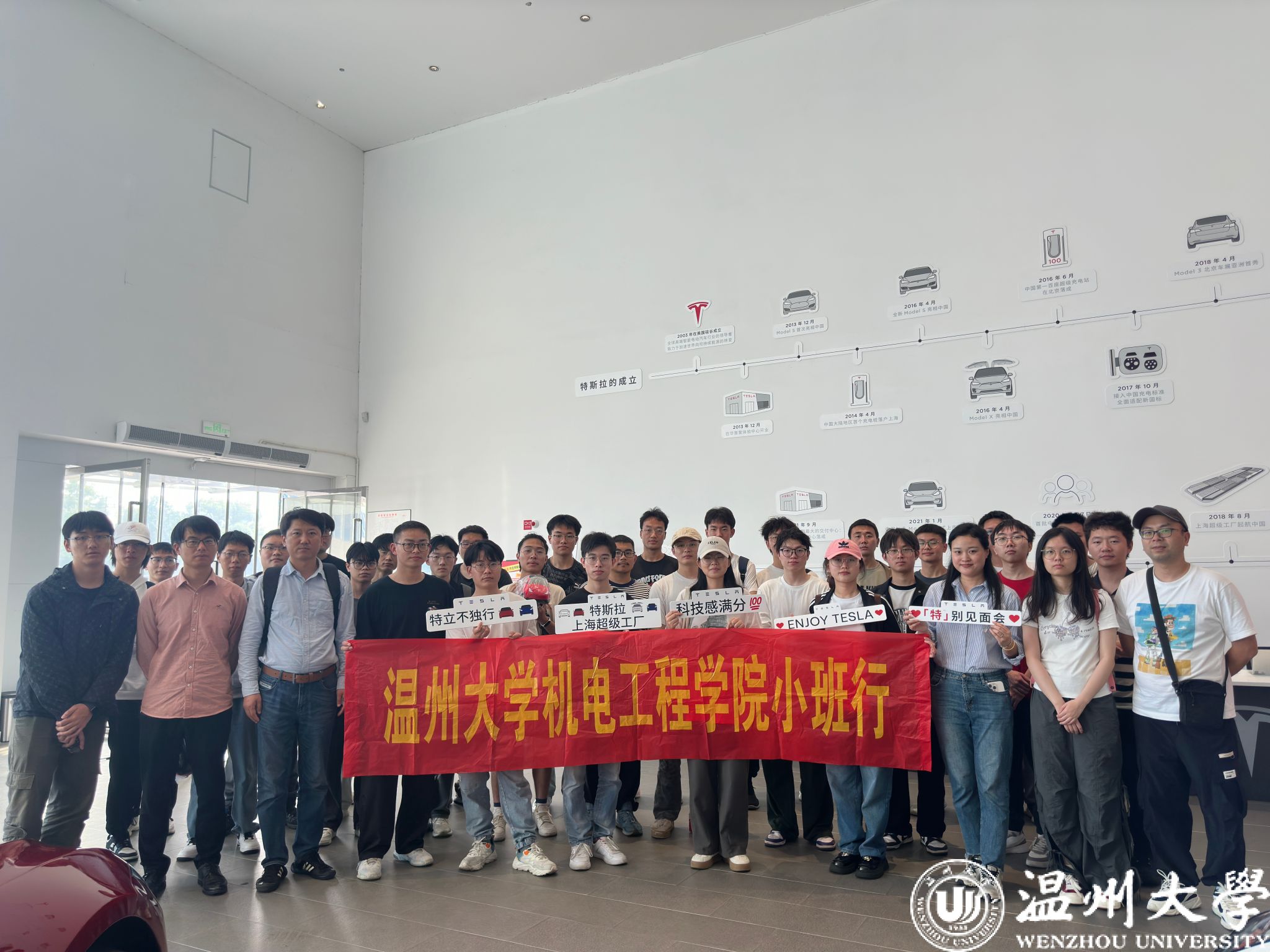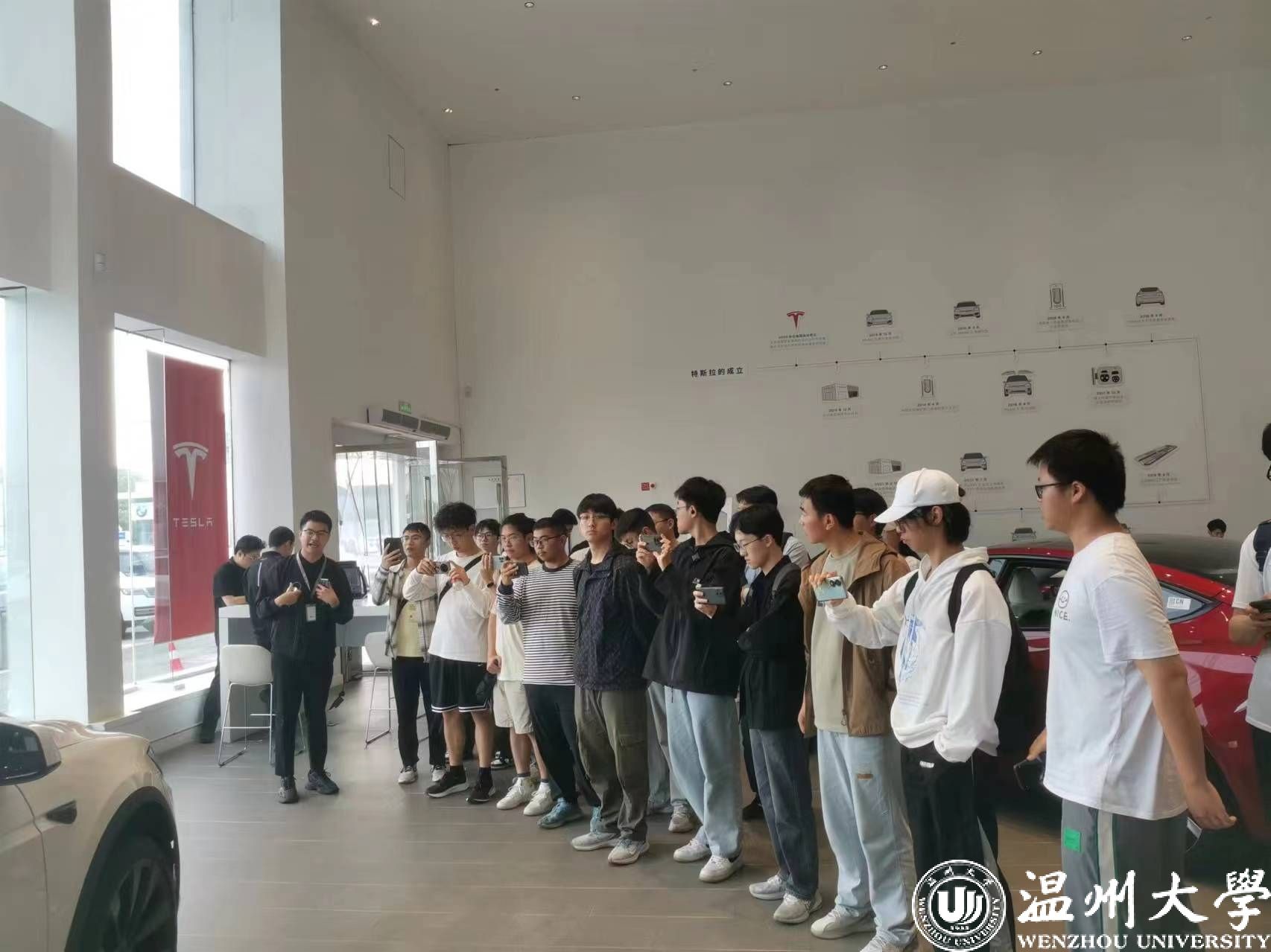4月17日,在双赢彩票 机械工程系主任成泰洪、系副主任章城老师带领下,双赢彩票 “名企小班行”走进温州龙湾特斯拉中心。