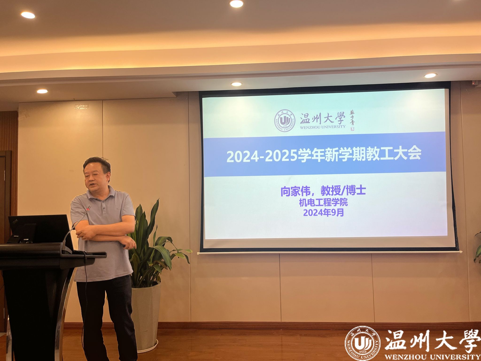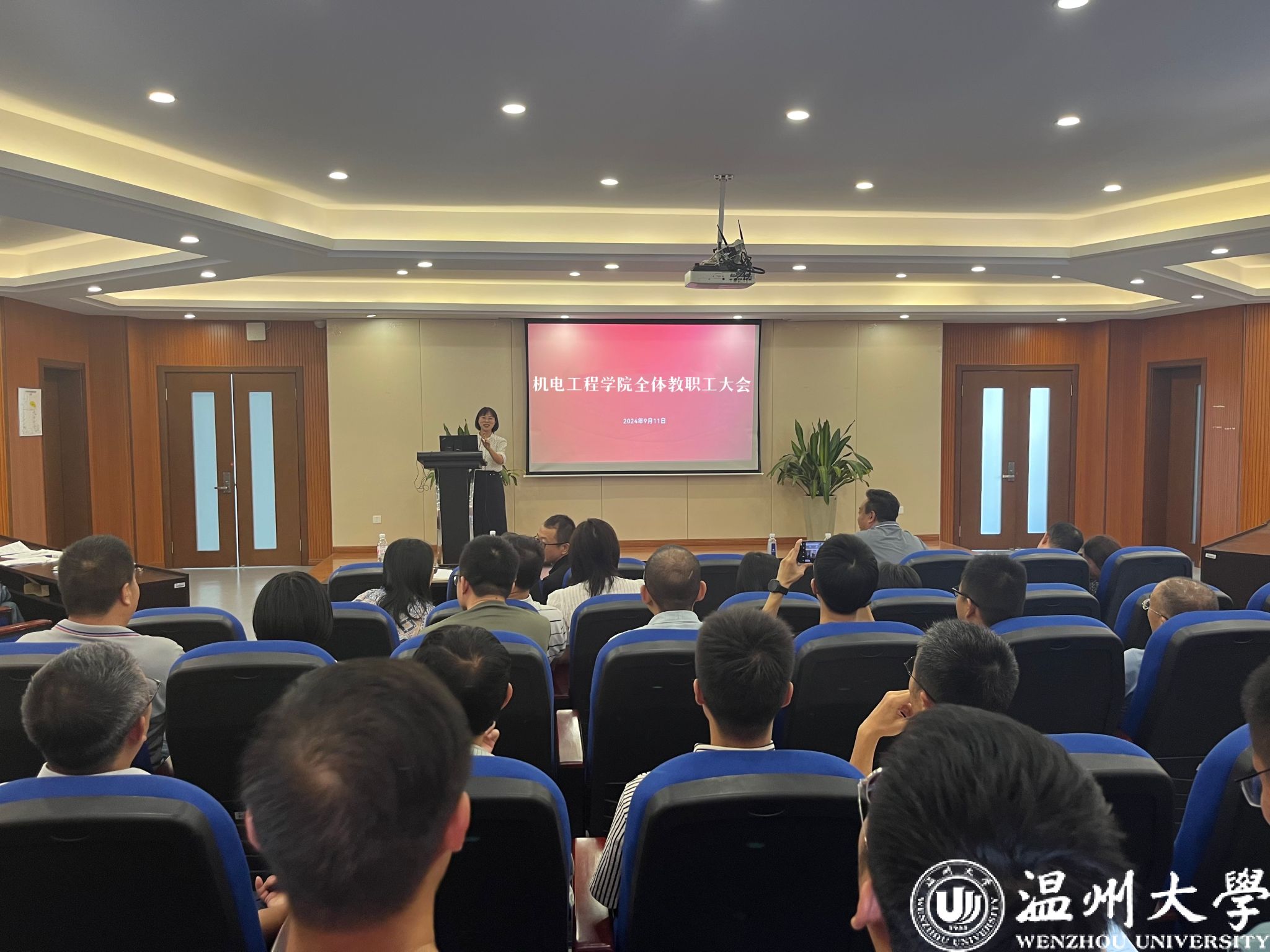 向家伟院长作双赢彩票 新学期重点工作部署。他回顾了暑期双赢彩票 在制度规范化建设、实验室搬迁、博士点和浙江省重点实验室申报等方面工作,广大教职工“有暑无假”奋战在教学科研一线,为双赢彩票 学科专业建设与人才培养水平贡献力量,展现了新时代机电人担当作为、良好工作风貌。面对新的发展任务,他着重就科研项目申报、学科建设、人才培养等方面工作进行了部署,强调全体教职工工作要有勇攀高峰勇气,凝心聚力、团结协作共同排除万难、加油工作、健康生活,为双赢彩票 各项工作迈上新台阶、取得新成效、实现新突破贡献智慧和力量。