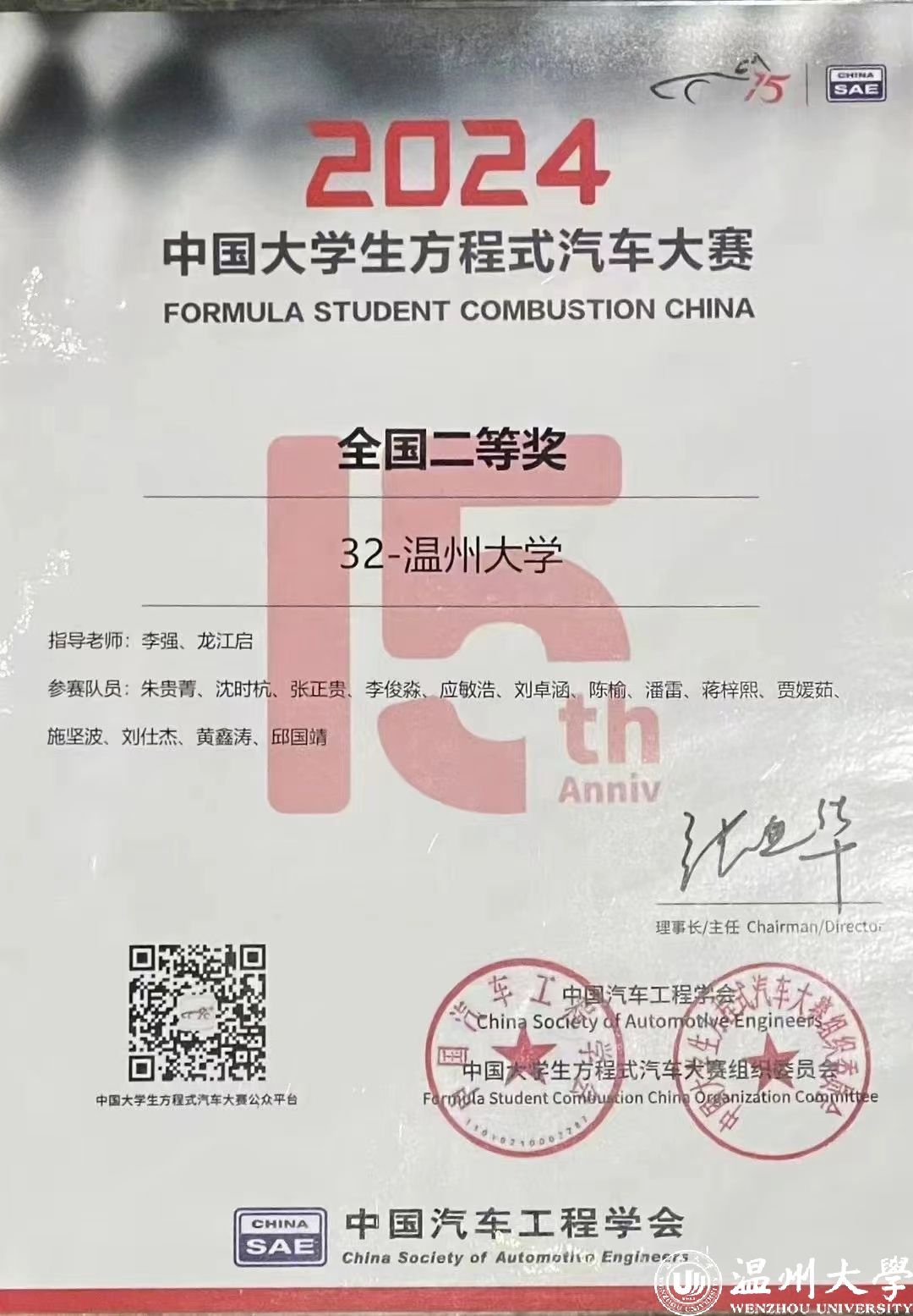 10月13日,由中国科学技术协会指导、中国汽车工程学会和郑州市人民政府共同主办的2024中国大学生方程式汽车大赛落下帷幕,本次大赛吸引来自中国、俄罗斯、德国三国的58支车队报名参赛。经过激烈角逐,双赢彩票 疾风赛车队以其卓越的技术实力与不懈的奋斗精神,在大赛与国内外知名高校同台竞技,凭借出色的车辆设计与卓越的驾驶表现,成功斩获全国二等奖,其中直线加速位列第八,8字绕位列第十,高速避障位列第十一,取得了建队以来最好成绩。