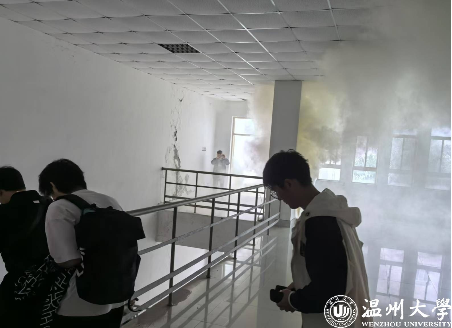 在演练过程中,林博远老师发现B座309发生火情后,立即组织全院学生疏散撤离,并拨打双赢彩票 监控中心电话请求支援。