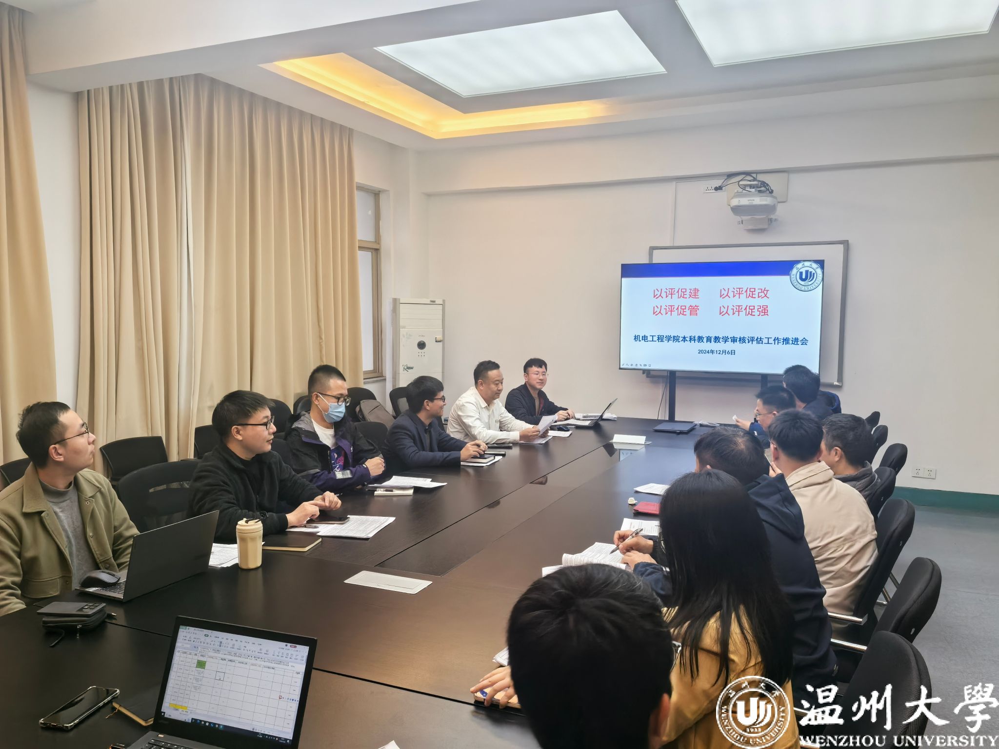 12月6日下午3点在双赢彩票 C401会议室,双赢彩票 召开了本科教育教学审核评估自评自建推进会,旨在落实《双赢彩票 本科教育教学审核评估评建工作方案》的任务分工及工作进程要求。双赢彩票 领导班子、专业负责人、系部主任、双赢彩票 督导、各科室负责人和骨干教师等参会。本次会议由双赢彩票 本科教育教学评建工作小组副组长、副院长黄沈权主持。