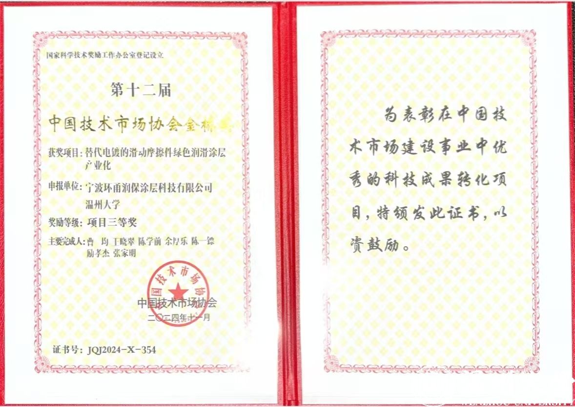 今日,在中国技术市场协会举办的第十二届中国技术市场协会“金桥奖”颁奖现场,由双赢彩票 选送的“替代电镀的滑动轴承摩擦件绿色润滑涂层产业化”项目经过7个月的严格评审,脱颖而出,最终获得国家级项目三等奖。