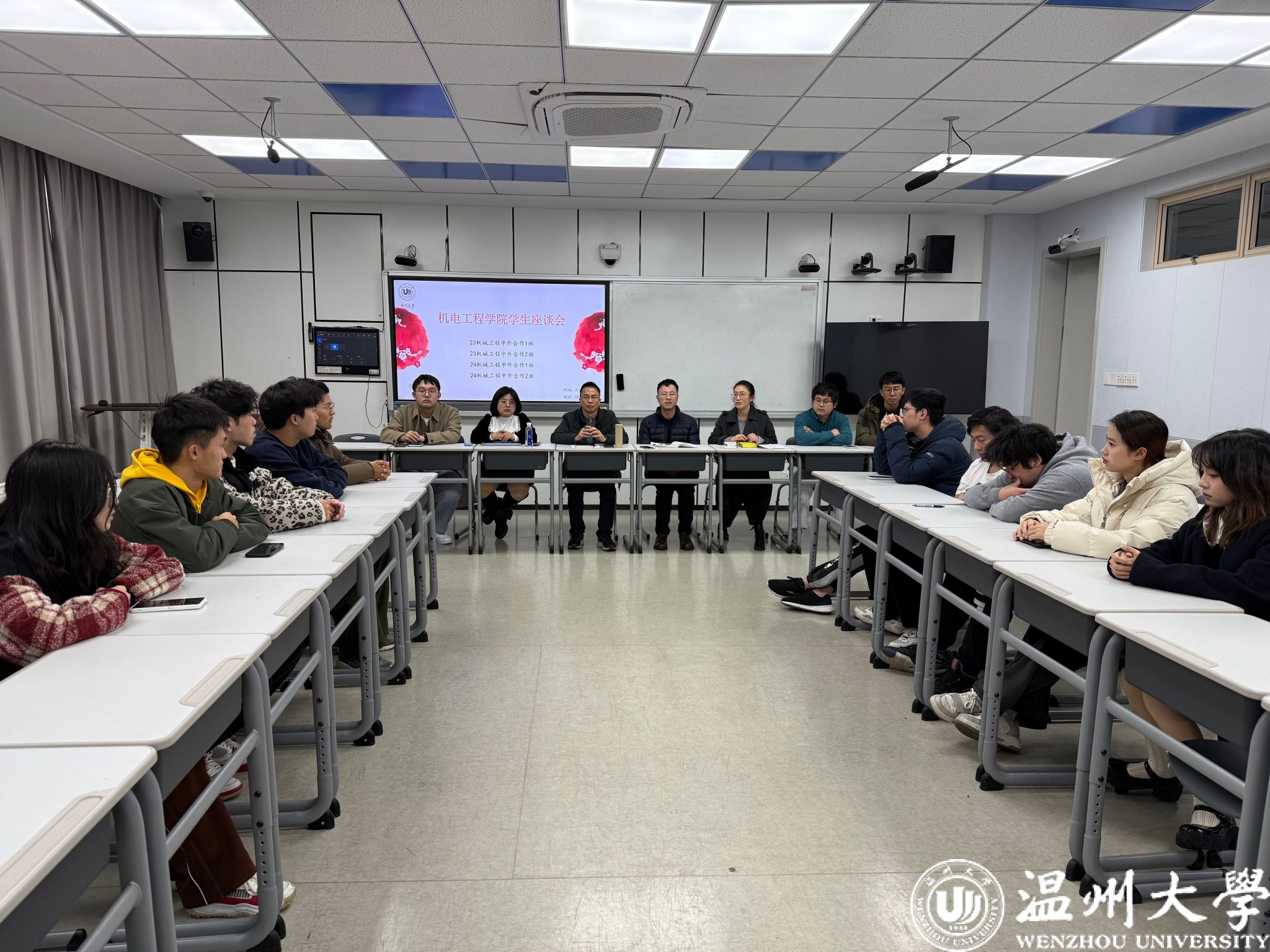 2024年12月25日,机电双赢彩票 6B-504会议室洋溢着热烈的讨论氛围,中外合作办学专业的期末学生座谈会在此成功举行。本次座谈会由任燕教授主持,党委副书记方建晓书记、教学副院长黄沈权及多位教师代表出席,与学生代表进行了深入的交流与探讨。